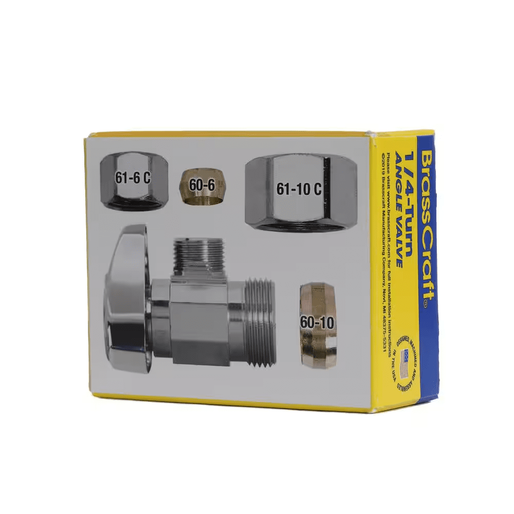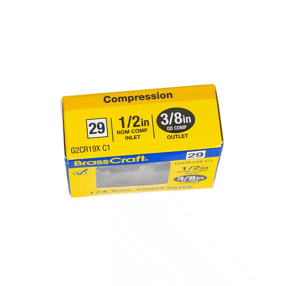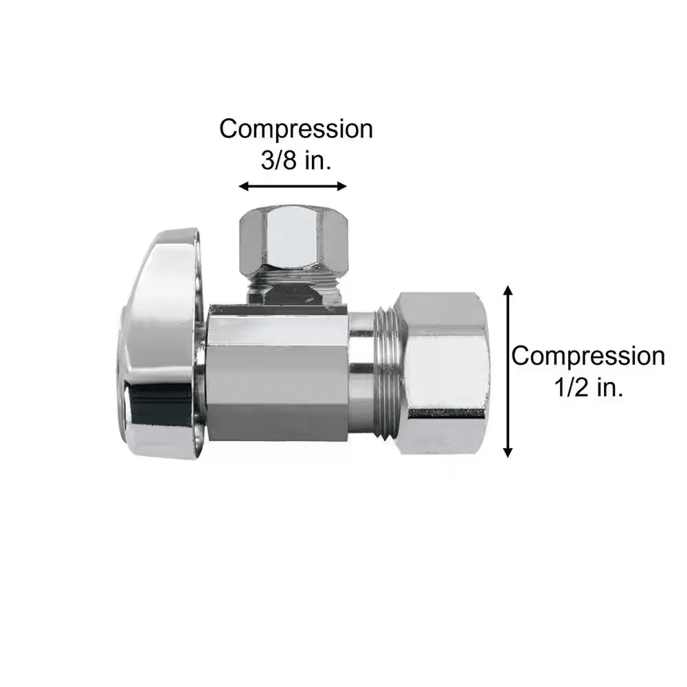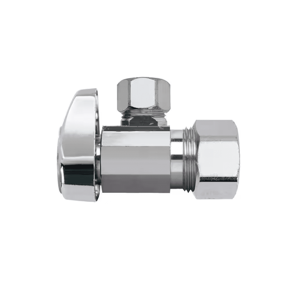 BrassCraft 1/2 in. Nominal Compression Inlet x 3/8 in. O.D. Compression Outlet 1/4-Turn Angle Valve controls water flow to household plumbing fixtures – faucets, toilets, dishwashers, icemakers, washing machines, etc. The angle valve is most often used where the water pipe enters the room from the wall. With a 90° turn of the valve handle, you are able to stop the flow of water leading to the plumbing fixture, allowing for maintenance and repair without shutting off the water to the entire home.