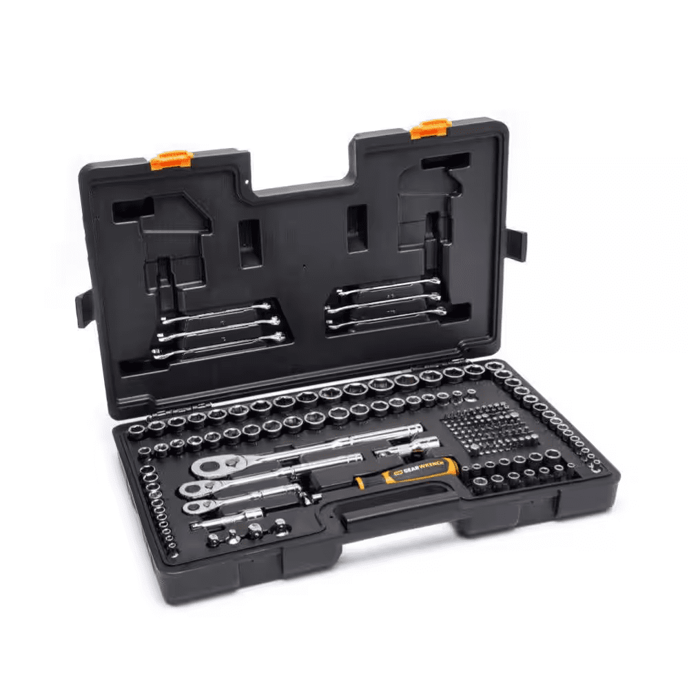 - 202-piece mechanics tool set with SAE and metric socket sizes