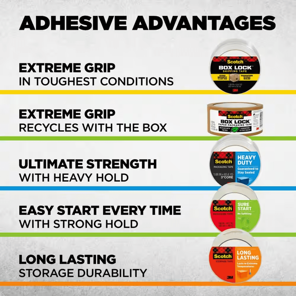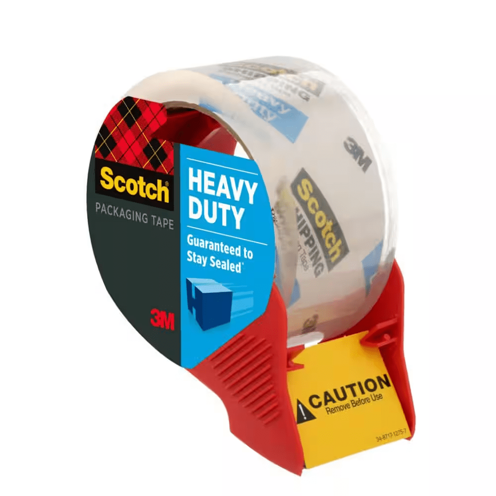 Now even the heaviest packages can withstand rough handling. The strong, tough, solvent-free hot melt adhesive of Scotch heavy duty packaging tape locks in your heavy duty contents and locks out everything else. You don’t need layers of tape to get the job done-just one strip at a time-so you save time. The included dispenser is designed to ensure the tape will not fall back on the roll, and the tape has a release coating to ensure an easy unwind. Your heavy packages can bear the weight and stay sealed through it all with Scotch heavy duty packaging tape.