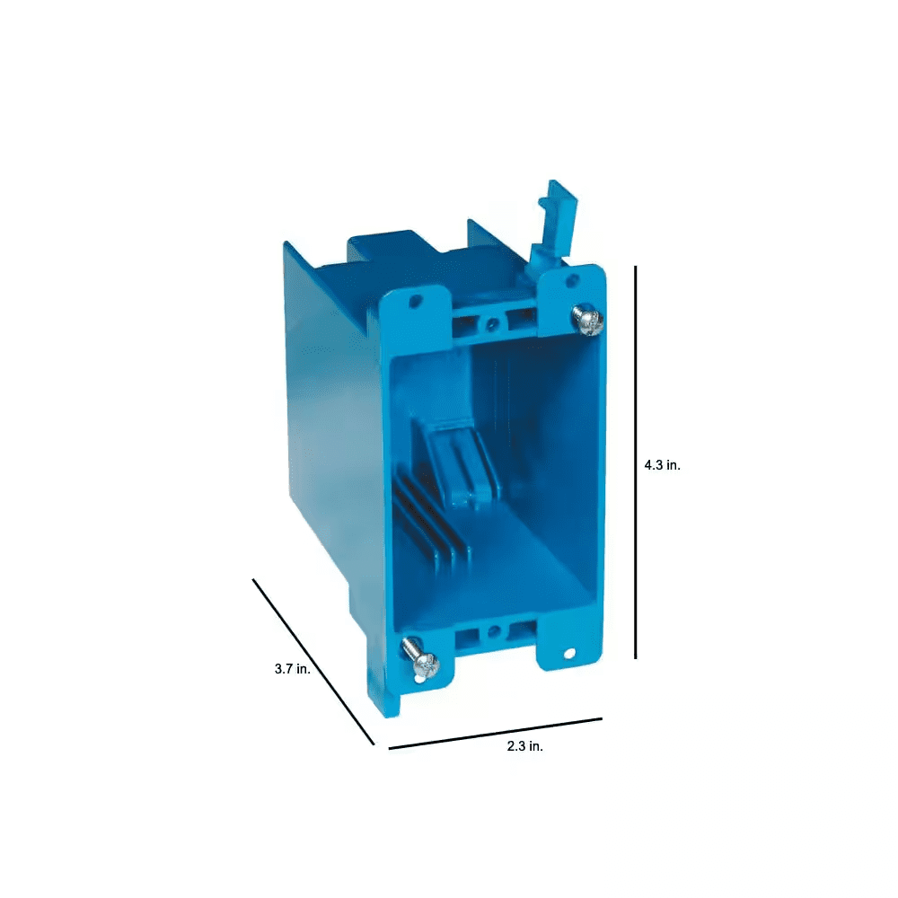 The Carlon Zip Box Blue 1-Gang 20 cu. in. Old Work Non-Metallic Switch and Outlet Box is designed to work with non-metallic sheathed cable in accordance with Article 314 of the National Electric Code. Great for light commercial and residential applications, the box is crafted with non-conductive PVC for durability and is fire rated and UL listed to help ensure safety.