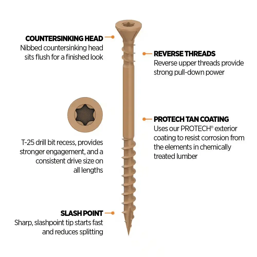 - Premium deck screw designed for exterior wood connections