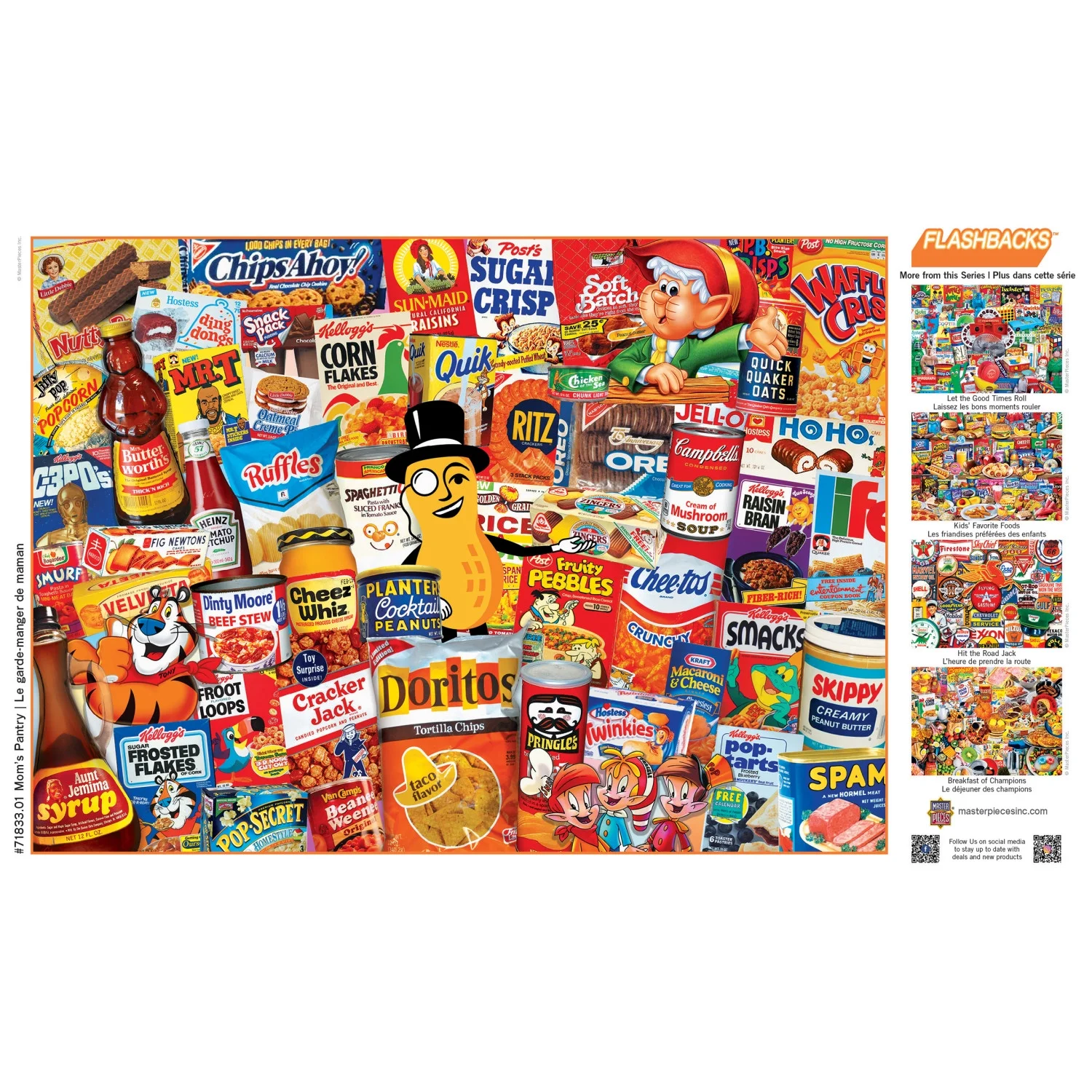 Take a delightful trip down memory lane with MasterPieces’ Flashbacks Mom’s Pantry 1000pc Puzzle! Uncover your mom’s beloved pantry favorites from bygone eras. Each piece carries the cherished memories of your favorite foods and snacks waiting to be assembled and providing a delightful challenge. This high-quality jigsaw puzzle features a matte finish and measures 19.25″ x 26.75″. Perfect for puzzle enthusiasts yearning for a taste of the past. Relish the satisfaction of completing this delectable puzzle and relive the joy of nostalgia!