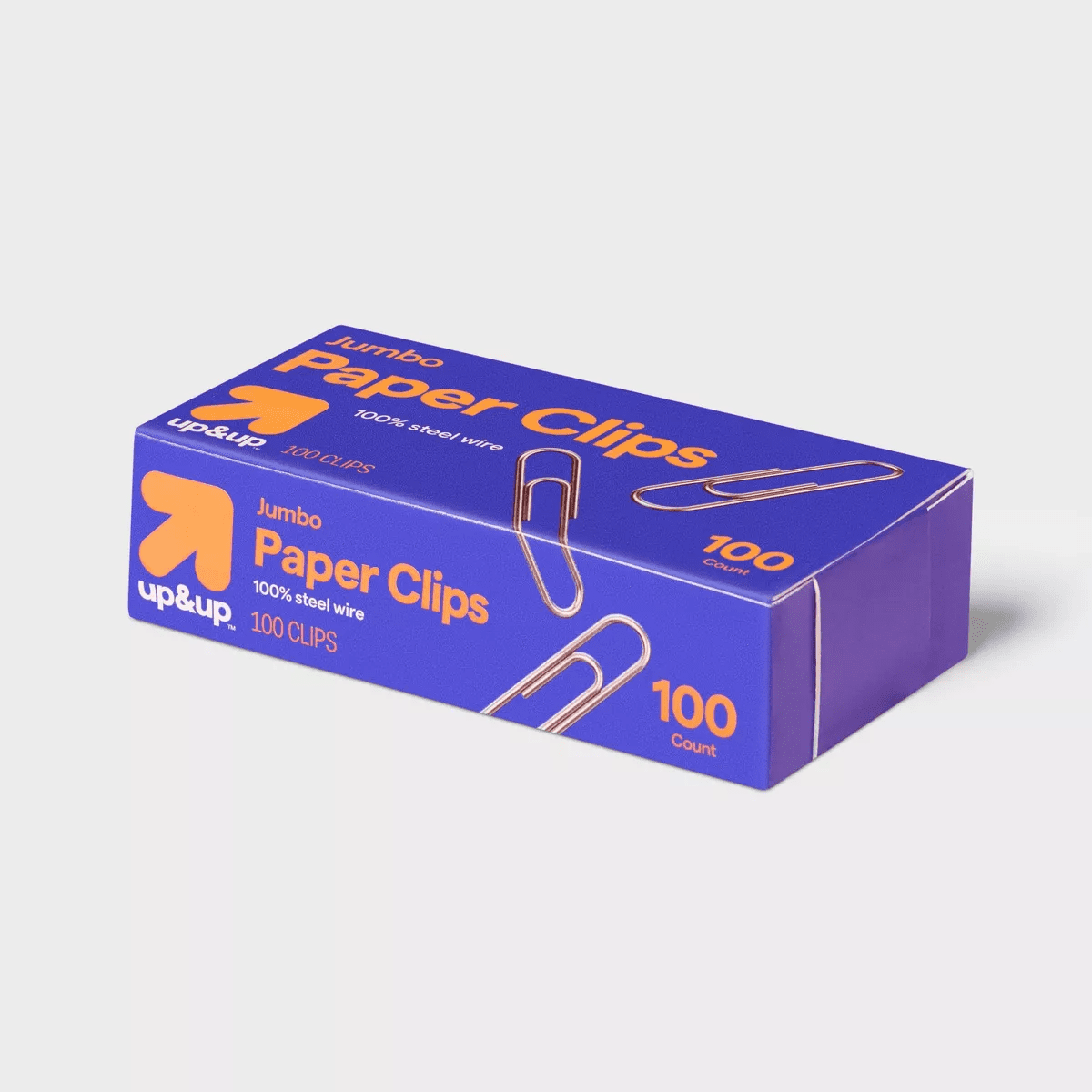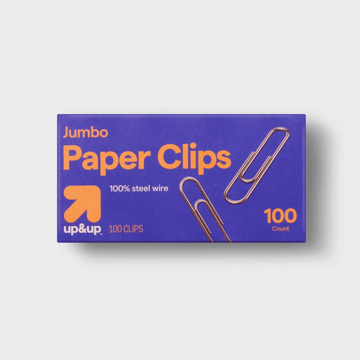 This 100-Count of Jumbo Paper Clips from up&up™ are perfect for keeping your classroom, home office or cubicle well-stocked. Made from steel wire for a sleek, simple look that doesn’t draw attention away from whatever they’re keeping together, these jumbo-sized paper clips are ideal for securing large stacks of files. And with a count of 100 paper clips in each box, it’ll be a long time before you need to purchase more!