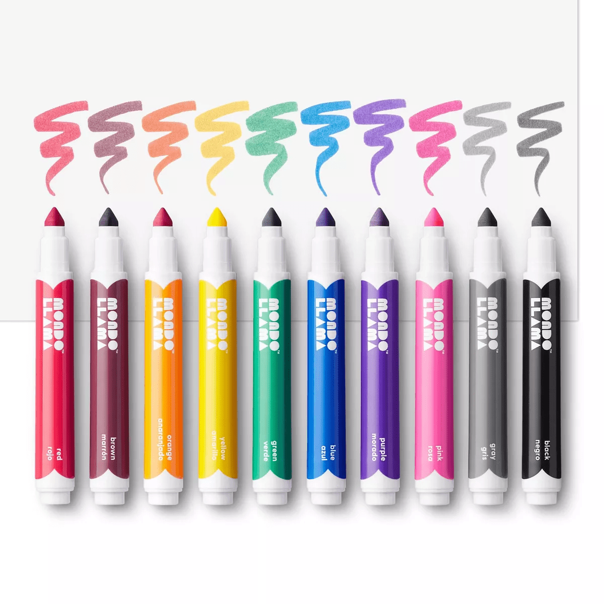 Kids and adults alike will love making colorful creations with these 10-Count Classic Colors Broad-Tip Markers from Mondo Llama™. Featuring a classic broad-tip design that’s suitable for drawing fine lines with the point as well as filling in larger areas with color, these broad-tip markers are great for everything from coloring and activity books to drawing custom greeting cards for special occasions. The pack includes pink, gray, black, brown, purple, blue, green, yellow, orange and red markers for a classic color combination that provides a good range of options, and they’re made with non-toxic ink. Artwork by Anne Ulku.