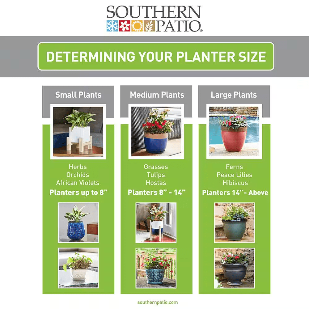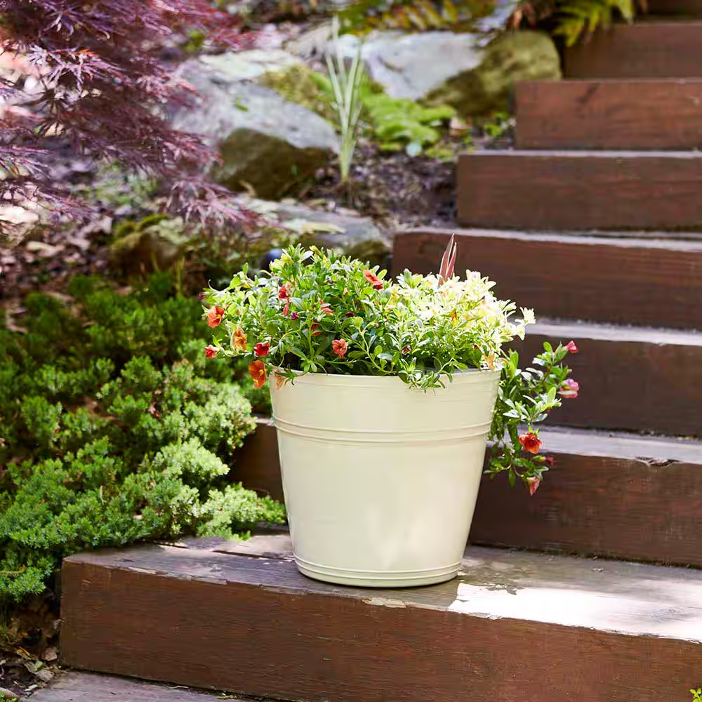 Trust Vigoro to fulfill your garden needs by using Vigoro’s planters and pots to add an ornate touch to your front porch, patio, living space or window seal. Excellent for Drop N’Bloom plants, the Inez planter is designed to take the guess work out of gardening. With chic colors and a simple design, this container is ideal for most 10 in. plants. Simply drop a potted plant into the Inez planter and forget having to add extra soil. The Inez planters don’t feature drainage holes, so they can catch excess water. Try pre-potted ornamental plants and flowers indoors and outdoors. These lightweight and UV-protected High-Density Resin (HDR) planters are premium among other resin planters in coloration, texture and finish.