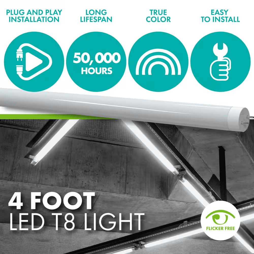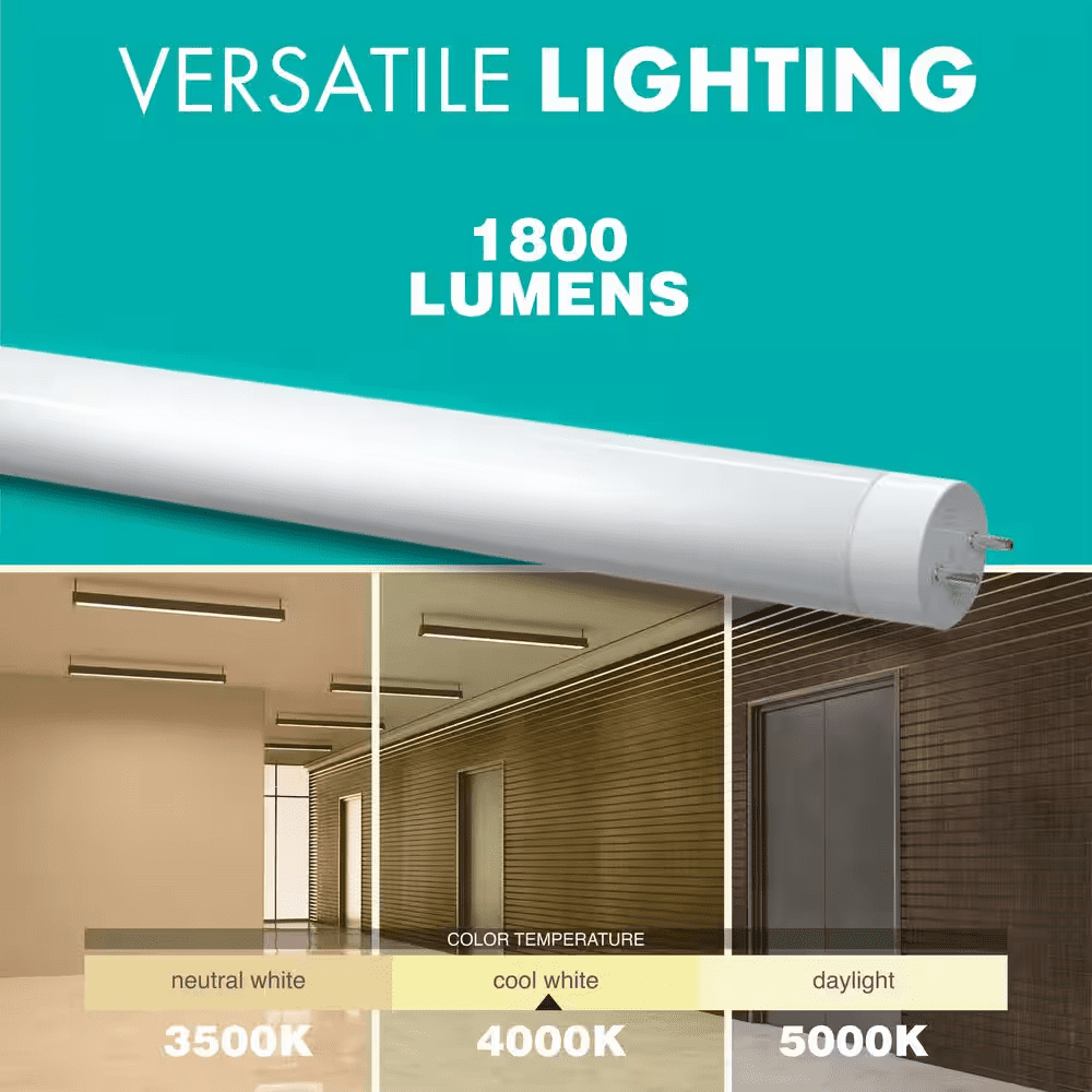 Get powerful illumination for low energy costs with our Simply Conserve 4 ft. Linear T8 LED Tube Light Bulb. This energy-saving LED bulb is ideal for enclosed indoor fixtures. You get an 11-watt LED light bulb with the equivalent output of a 32-watt traditional fluorescent light bulb. That’s significant energy cost savings for reliable lighting that lasts for 50,000 hours of continuous use. You get the same 1800-lumen output of a comparable fluorescent tube but free of the yellowing and bending that comes with older T8 bulbs. Type A technology makes this the ideal solution for converting all of your existing fixtures to LED. The 4-foot LED light bulb can plug and play into an existing compatible ballast for your convenience. You get a strong, quick and safe installation without needing to rewire the ballast or fixture. It’s compatible with most electronic instant-start and programmed-start T8 ballasts so you get an easy setup for durable illumination that lasts for years. Our energy-efficient 4000K LED light bulb comes in a full glass housing that allows the unit to run cool with minimal heat output. It’s mercury-free for peace of mind, springs to life in less than a second and it’s flicker-free so you will always have steady reliable lighting. Our LED replacement for fluorescent tubes is well-suited to offices, conference rooms, hotels, academic complexes and commercial and medical facilities. It’s RoHS compliant and cULus listed and it comes with a limited 5-year warranty.