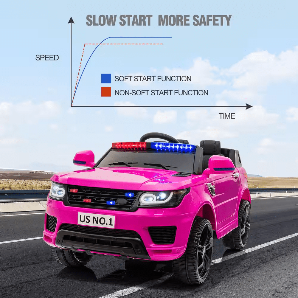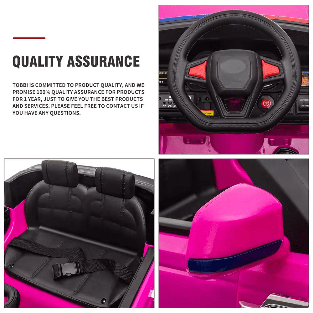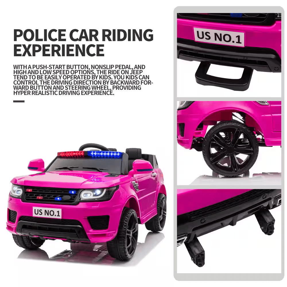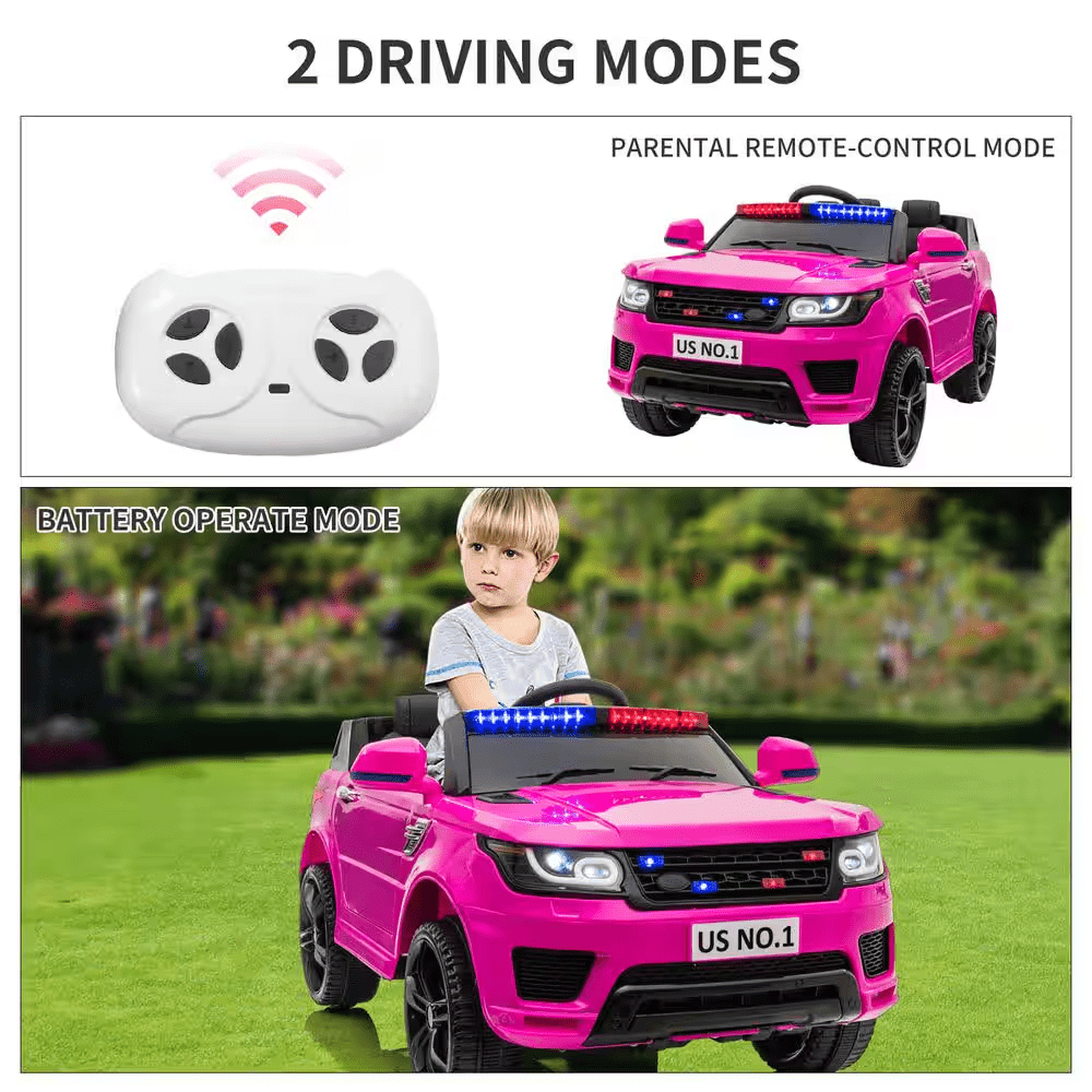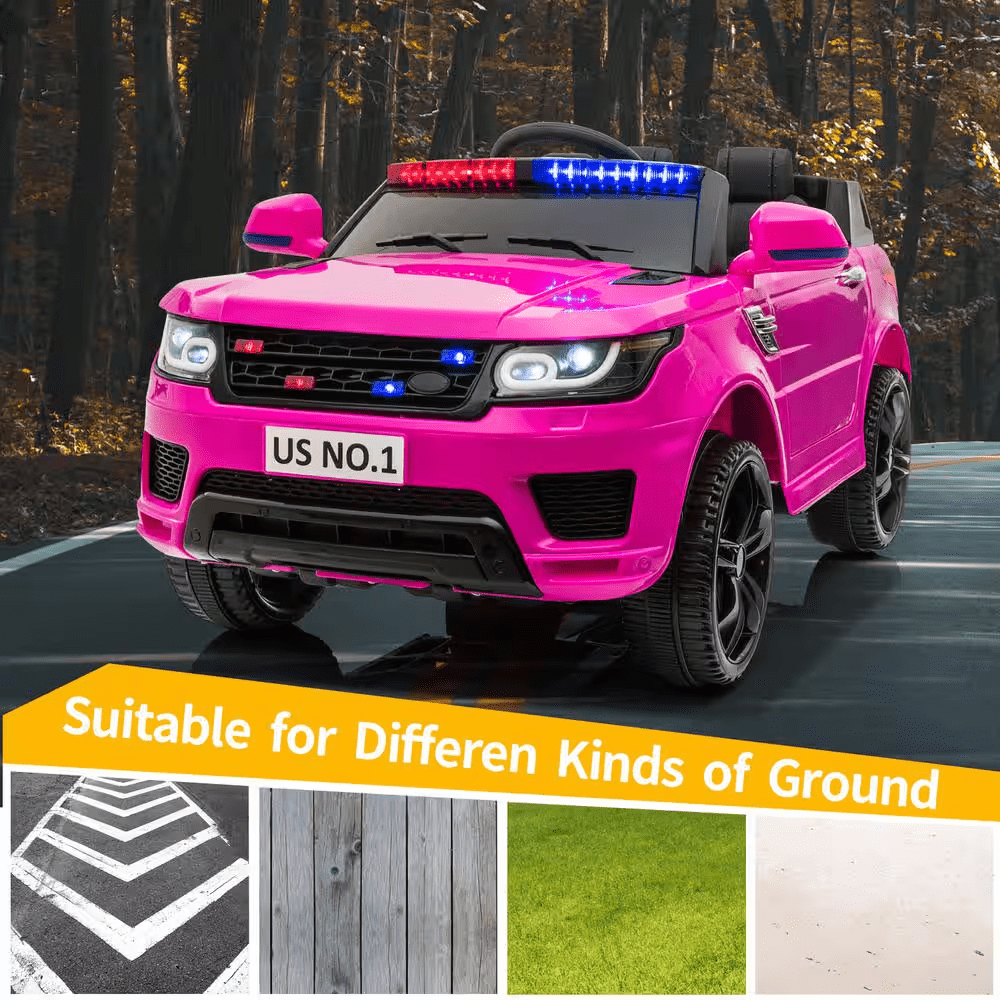 Have this stylish fire truck in your home and fulfill your kids’ police dream.This ride on electric car is designed with cool and stylish appearance, as well flashing light, siren, megaphone and fire truck signs, which offers authentic experience to your children. Press the start button, grasp the steering wheel, your guys can cruise the neighborhood to safeguard the territory. The multifunctional ride on car, with build-in music, horn, story, and LED lights makes the ride more enjoyable. Furthermore, the Bluetooth function, AUX port, USB interface and TF card slot also allow you to connect to your own device to play music. While offering endless fun, it also ensures your children’s safety. The wear resistant wheels with suspension system and spacious seat with safety belt together provide safe and smooth ride. And parents can have a remote override control to take over the manual driving.Call your kids to start their next off-road adventure with their friends immediately!