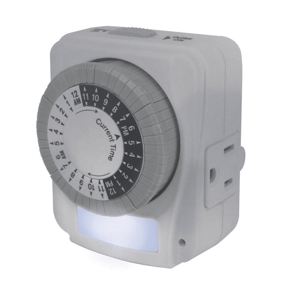 - Designed to turn outlets on and off at the same time daily