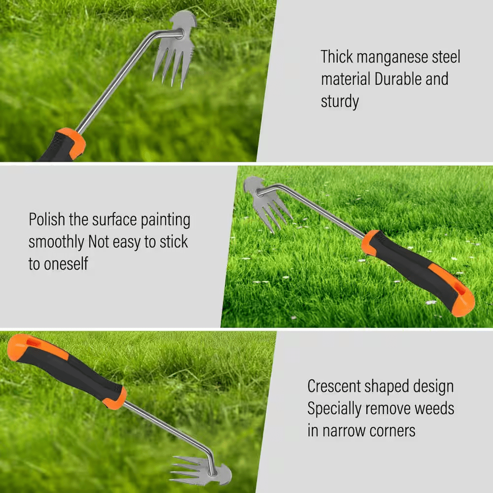Tackle stubborn weeds effortlessly with this upgraded garden weeder tool, featuring a sturdy all-steel design and a comfortable rubber handle for easy grip. The elongated handle and sharp 4–tooth blade ensure high efficiency and precision for digging, uprooting, and planting in your backyard or vegetable garden. Ideal for managing thistles, dandelions, crabgrass, and more, it’s the essential tool to keep your garden thriving and beautiful.