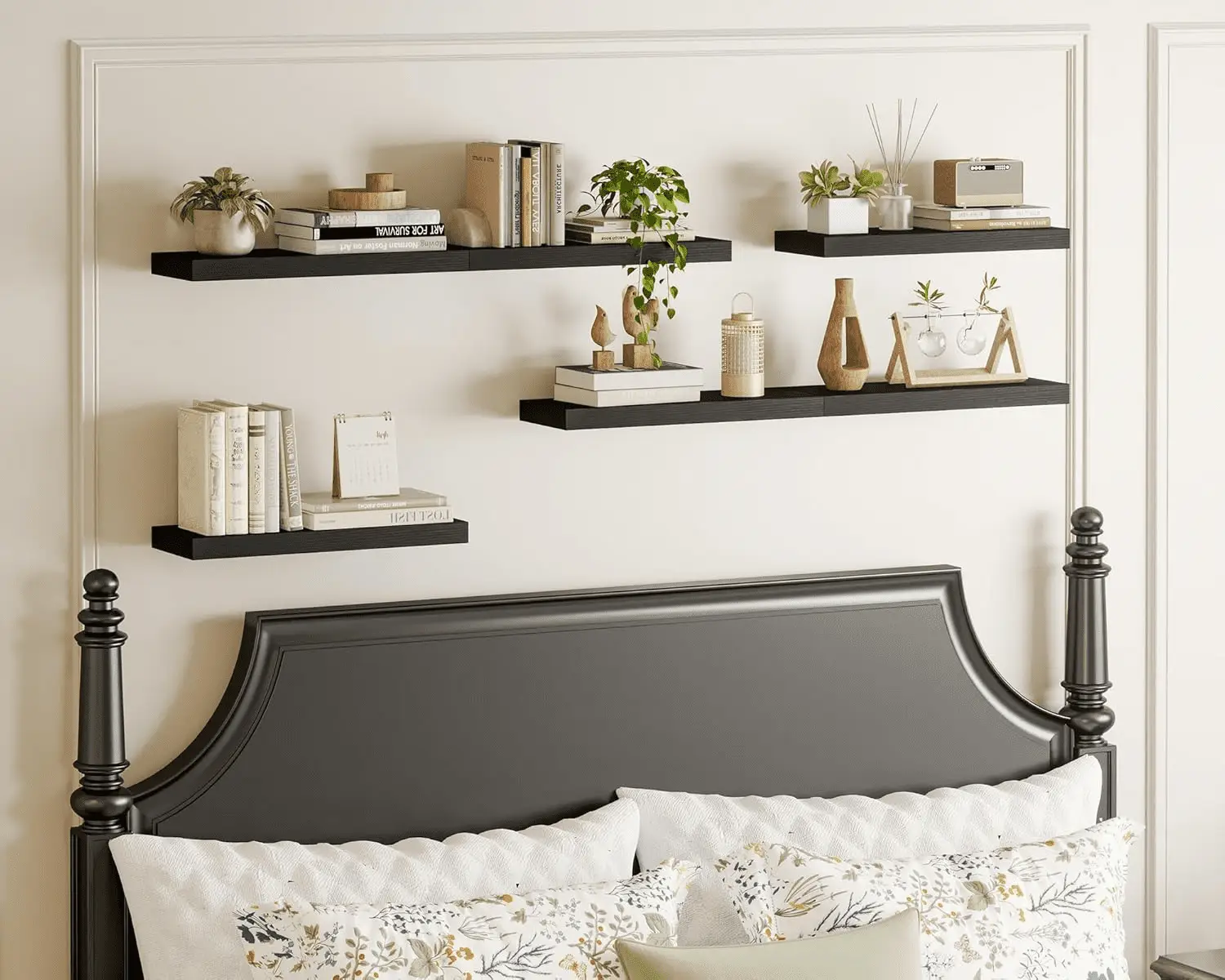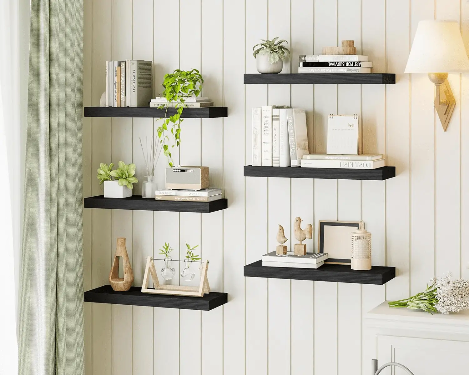 - [More Space For Your Home] Why not try a wall when your house floors and desktops are cluttered? Fixwal set includes 6 floating shelves that can fulfill your storage needs in multiple spaces in your home such as bathroom, bedroom, living room, kitchen, den and more!