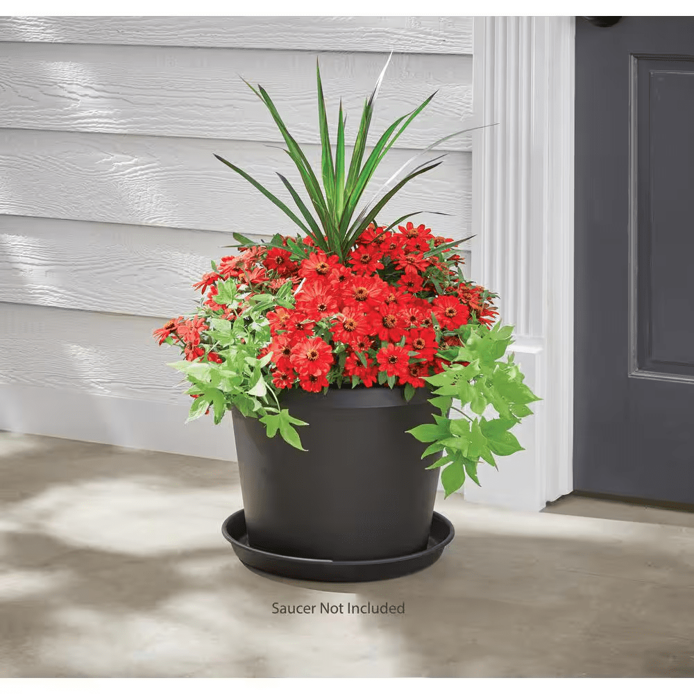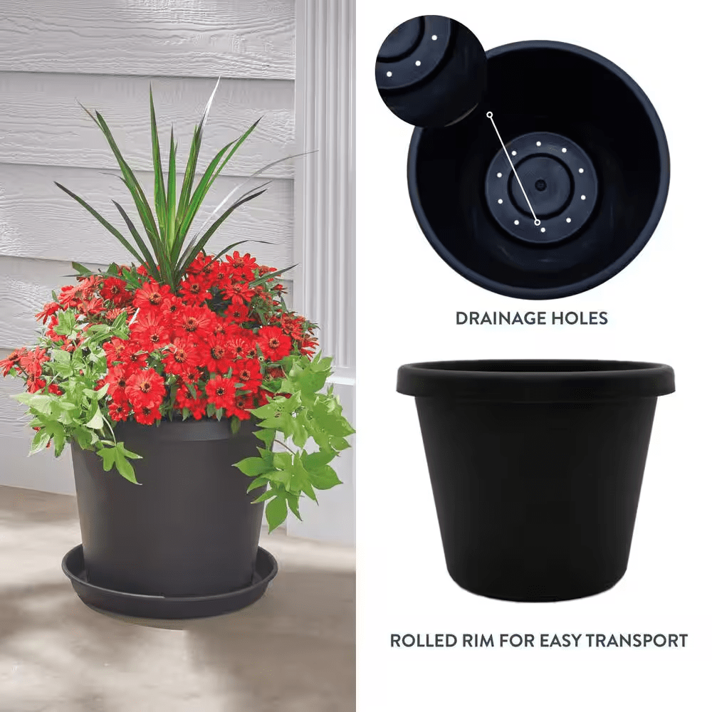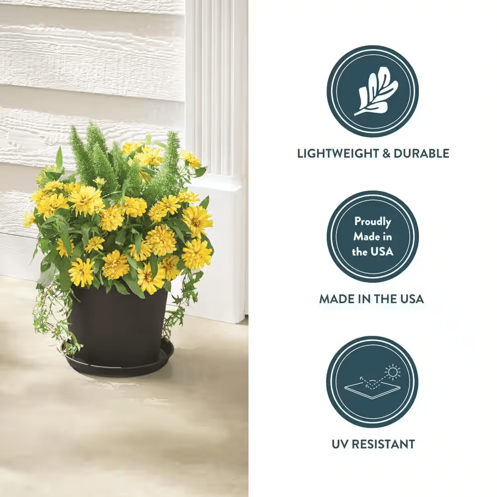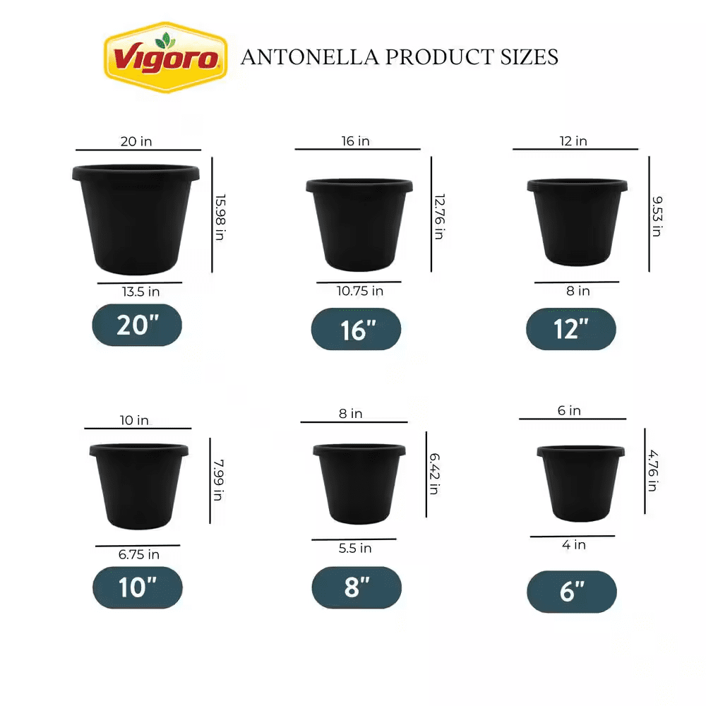 Trust Vigoro to fulfill your garden needs by using Vigoro’s planters and pots to add an ornate touch to your front porch, patio, living space or window seal. Antonella planter has a sturdy rolled rim for easy lifting and moving and feature 10-drain holes to help prevent over watering. These planters are lightweight, weather-resistant and durable. Low profile saucers in coordinating colors (sold separately) make this planter ideal for indoor or outdoor spaces.