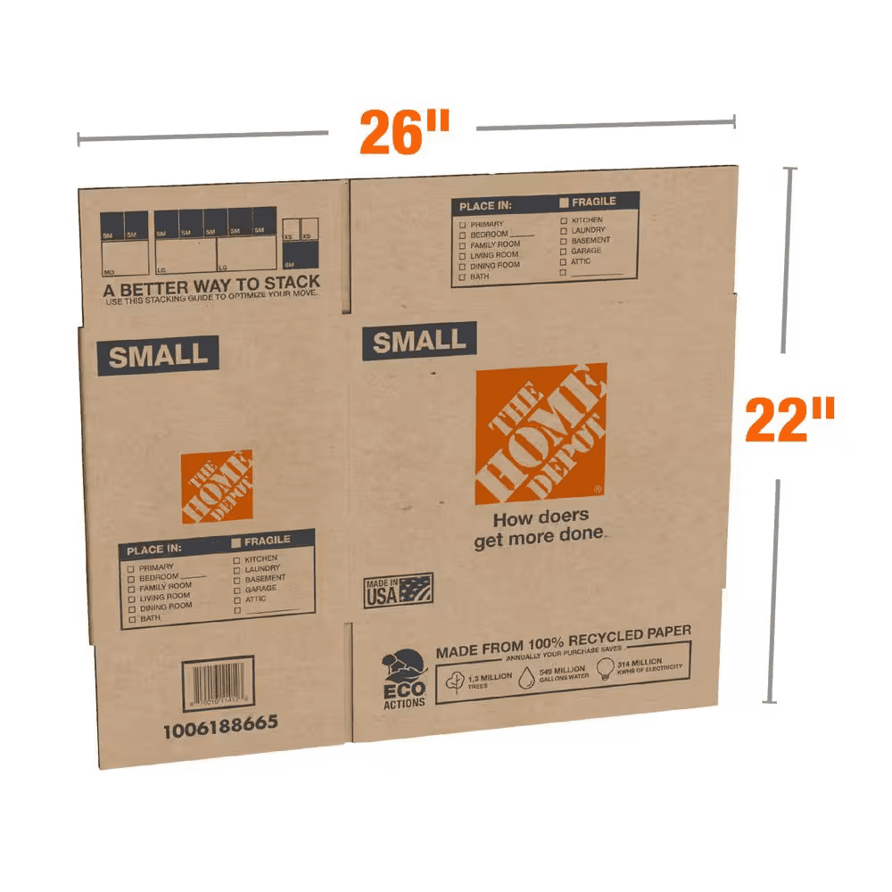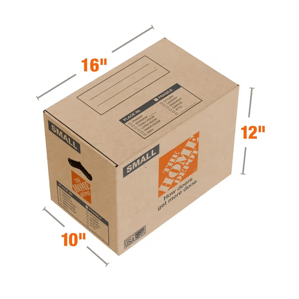 The Home Depot Small Moving Box is great for moving and storing small and heavy items. Ideal for books, tools, CDs, and more. This box is crafted from 100% recycled material for an environmentally responsible moving and storage option.