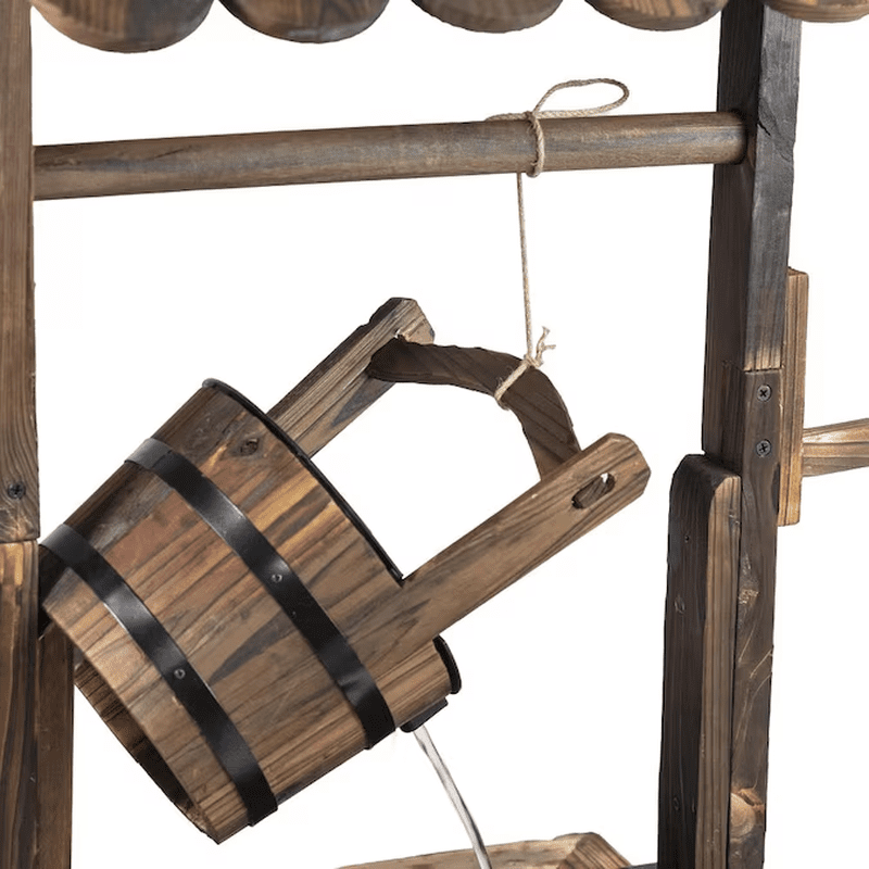 This gorgeous wood 2-tier water barrel fountain is made with real wooden barrels and the resin inserts allow it to handle the elements for a long life in your garden.