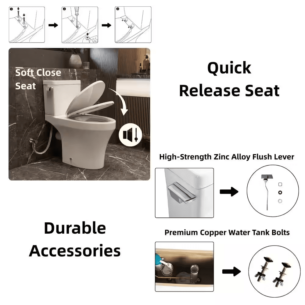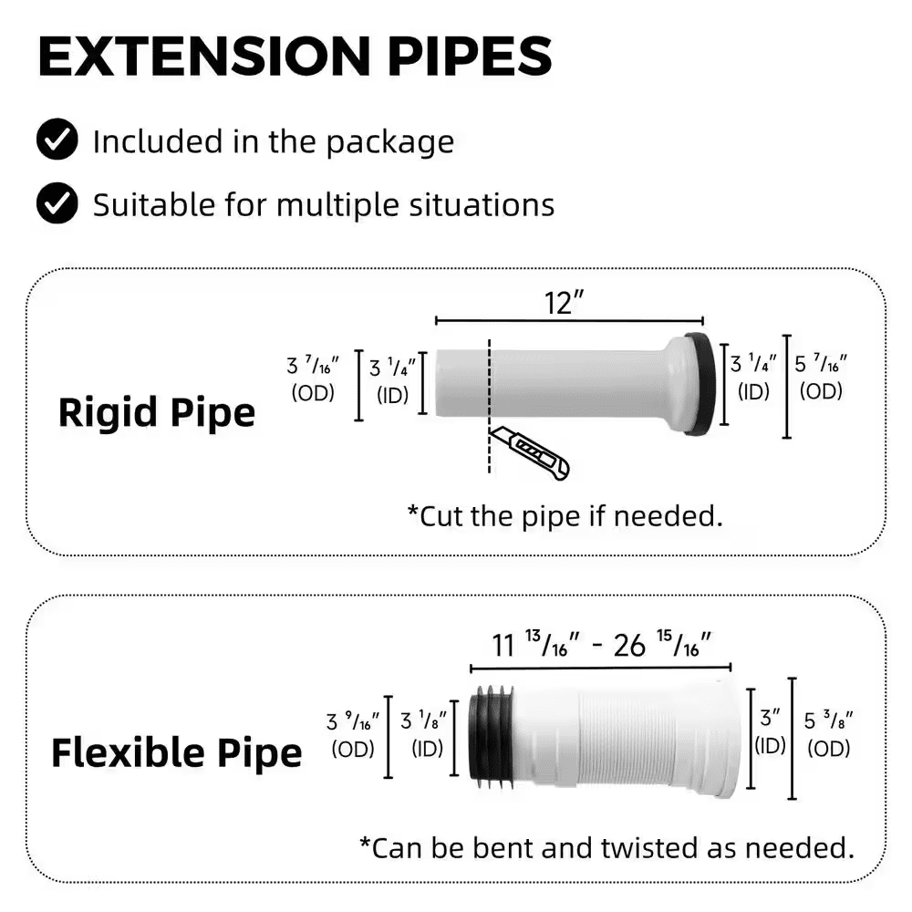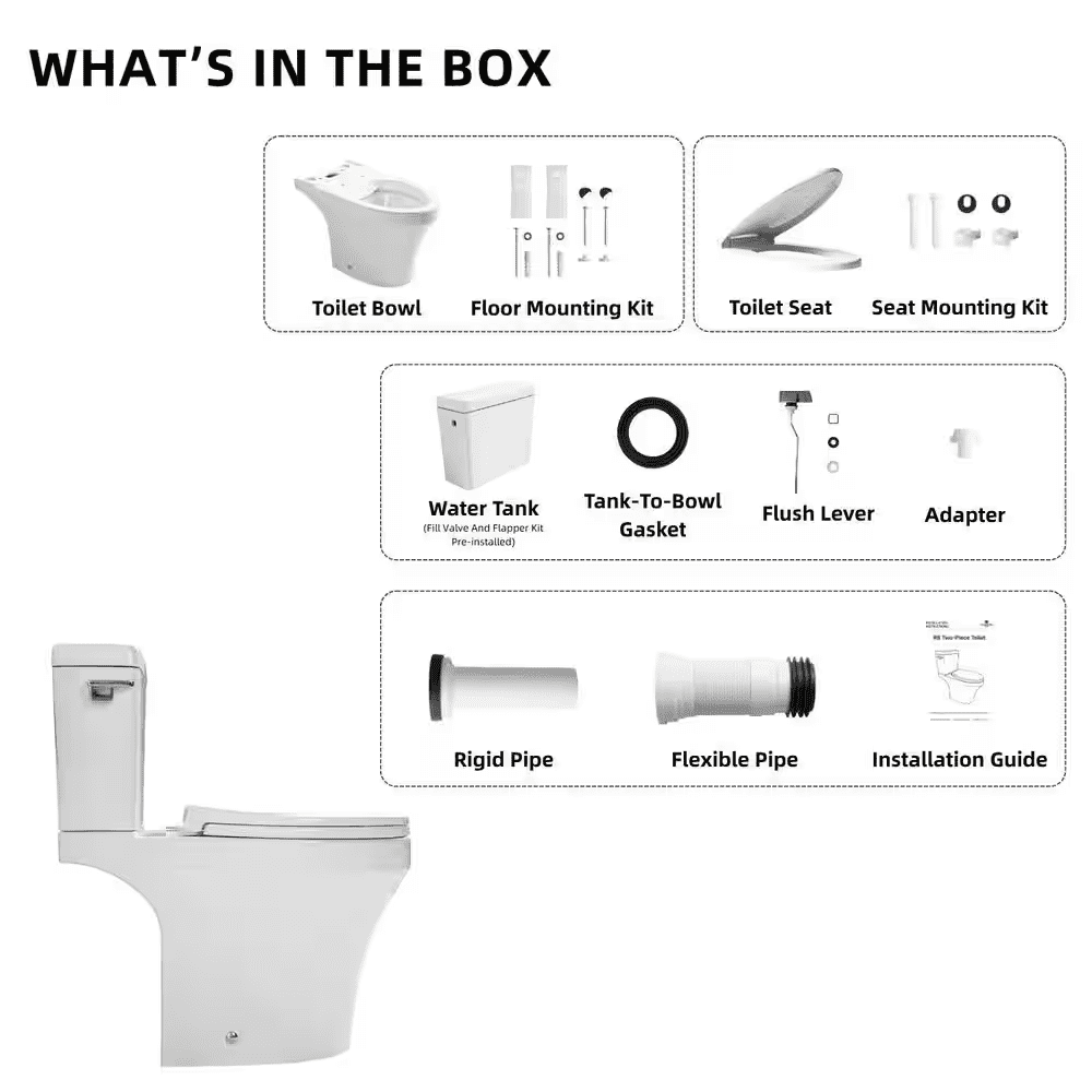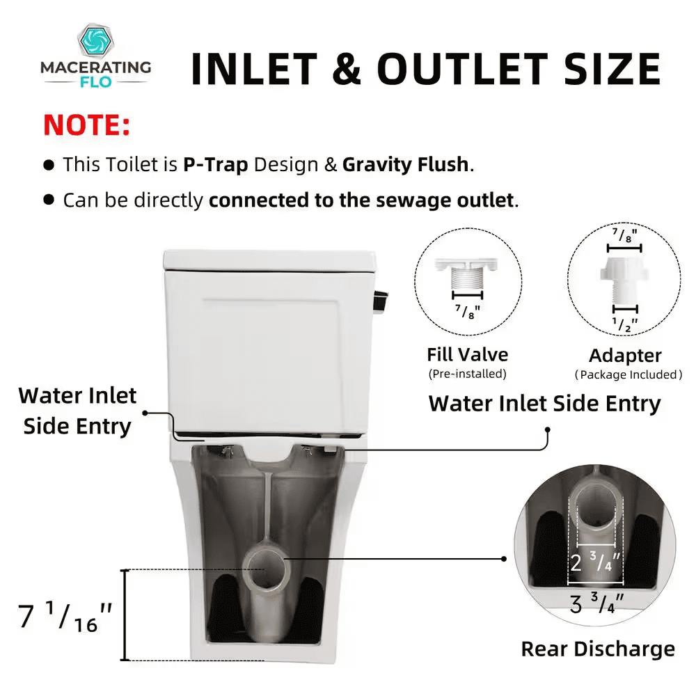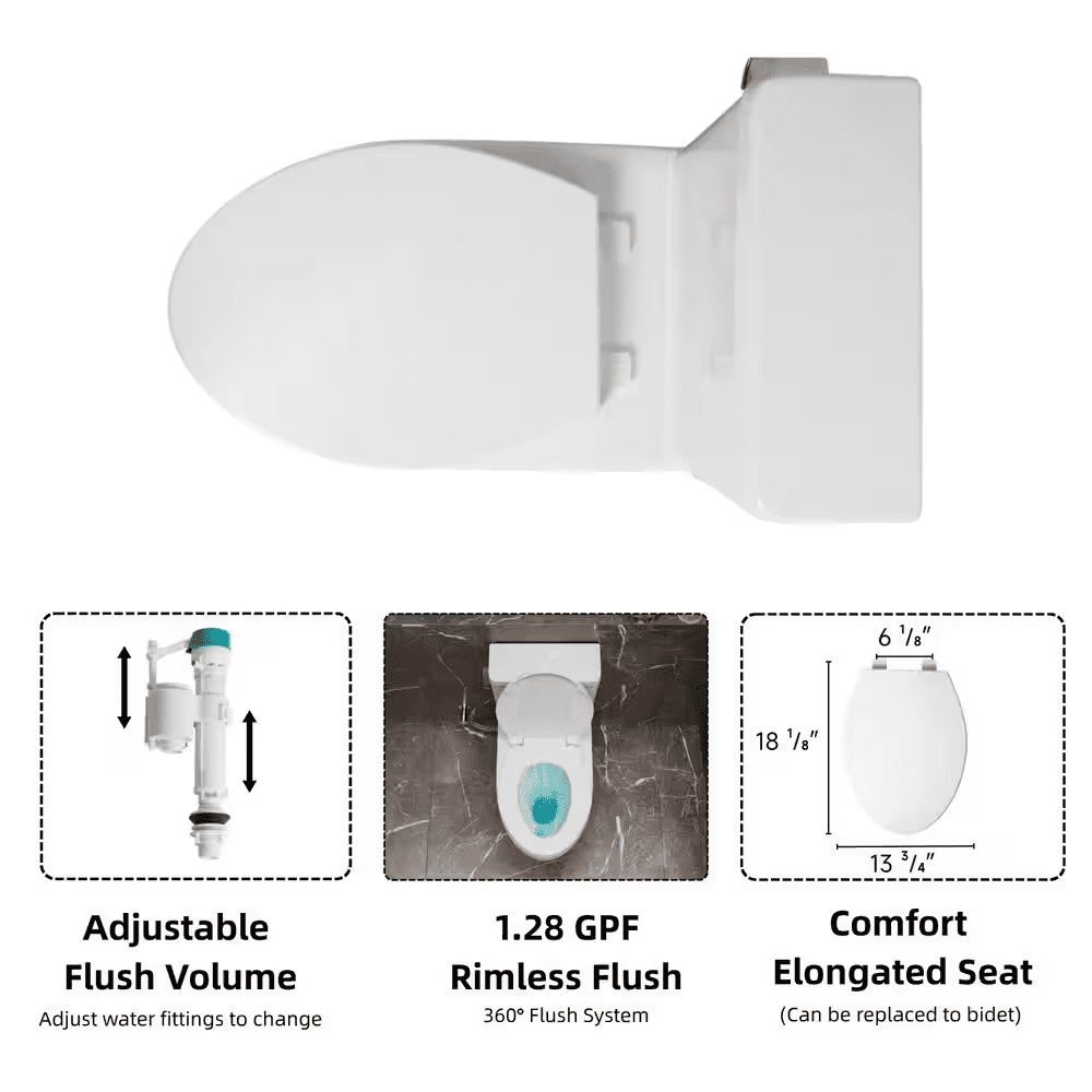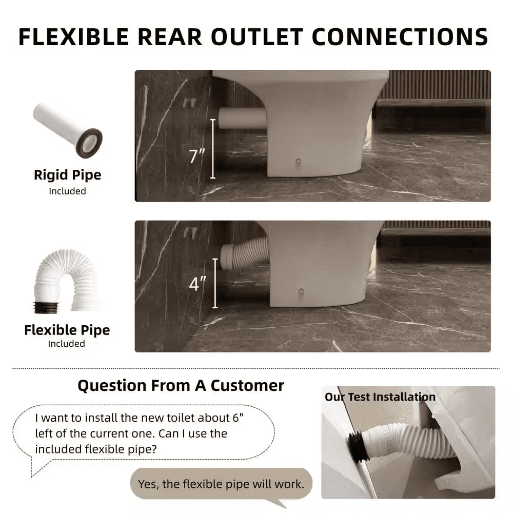 MaceratingFlo rear outlet toilet offers a practical solution for spaces without floor drains, featuring a 7-inch rough-in, extension pipes, and easy wall-mounted installation. Its 18-inch comfort height and elongated bowl provide added accessibility and seating space, while the 1.28 GPF rimless flush system delivers efficient, water-saving performance. Built with durable high-gloss ceramic in a sleek skirted design, this toilet is backed by a 2-year limited warranty and reliable customer support.