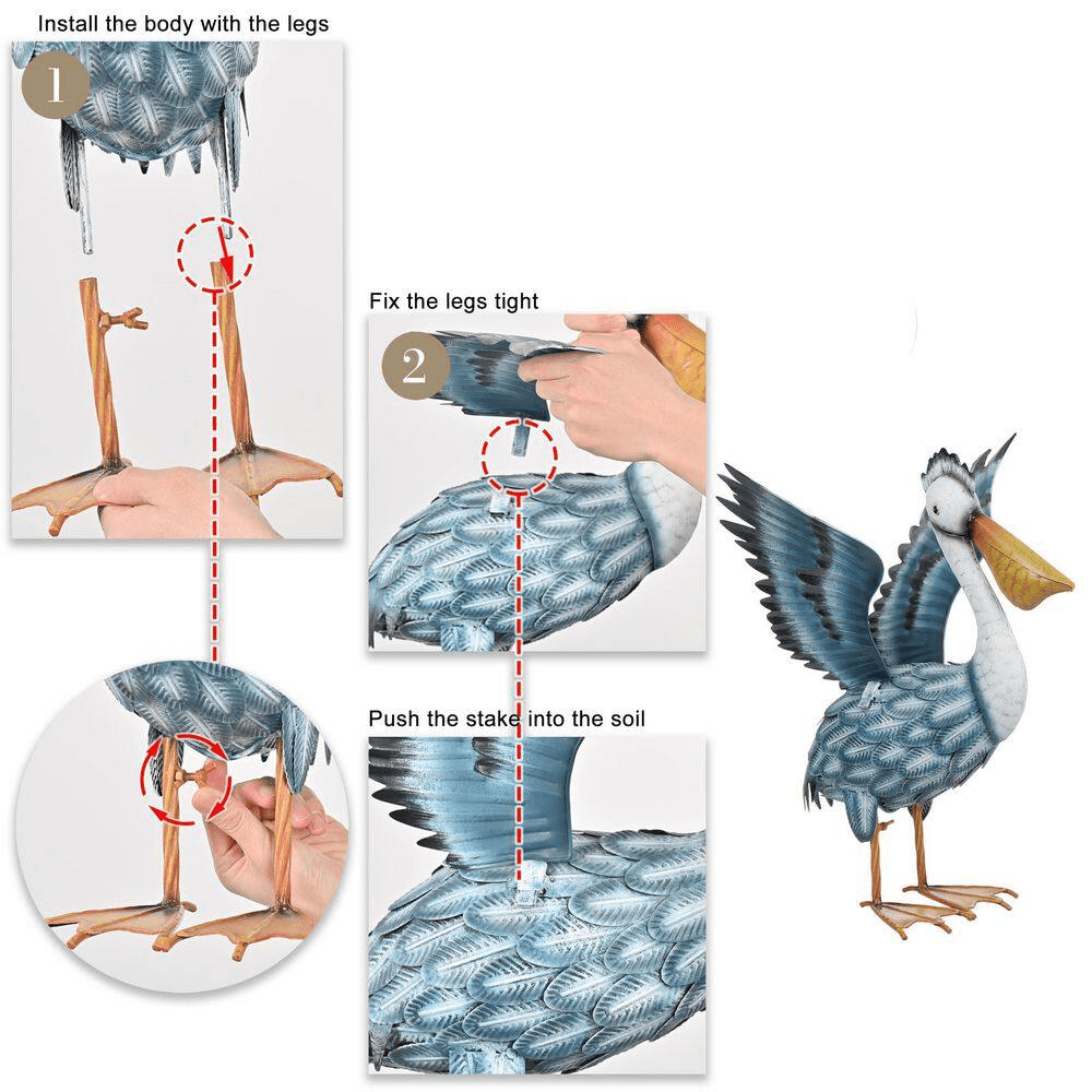 The sculpture crafted in the style of a pelican, features a wide and elongated beak, with its wings spread open. The feathers are vividly colored and realistic, all hand-painted by artisans stroke by stroke, bringing your outdoor garden to life. Easy to Assemble- No tools are required for assembly, you can easily put it together in no time.