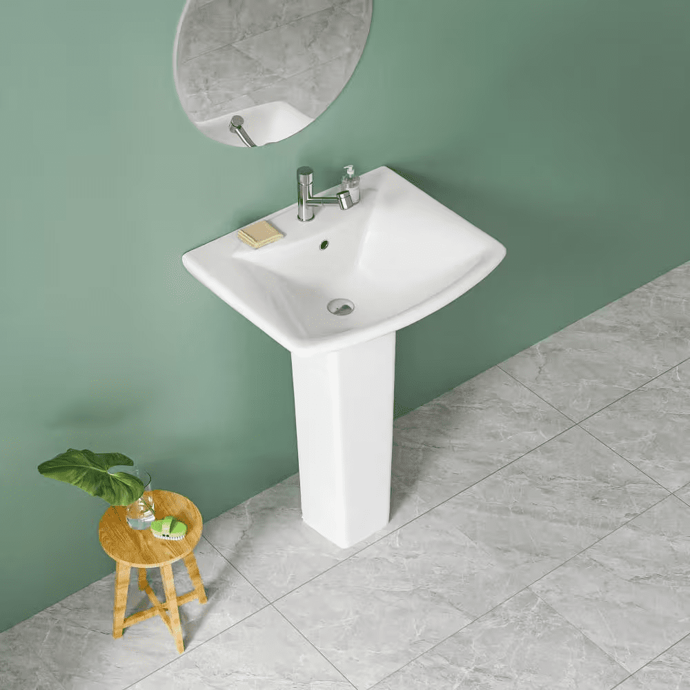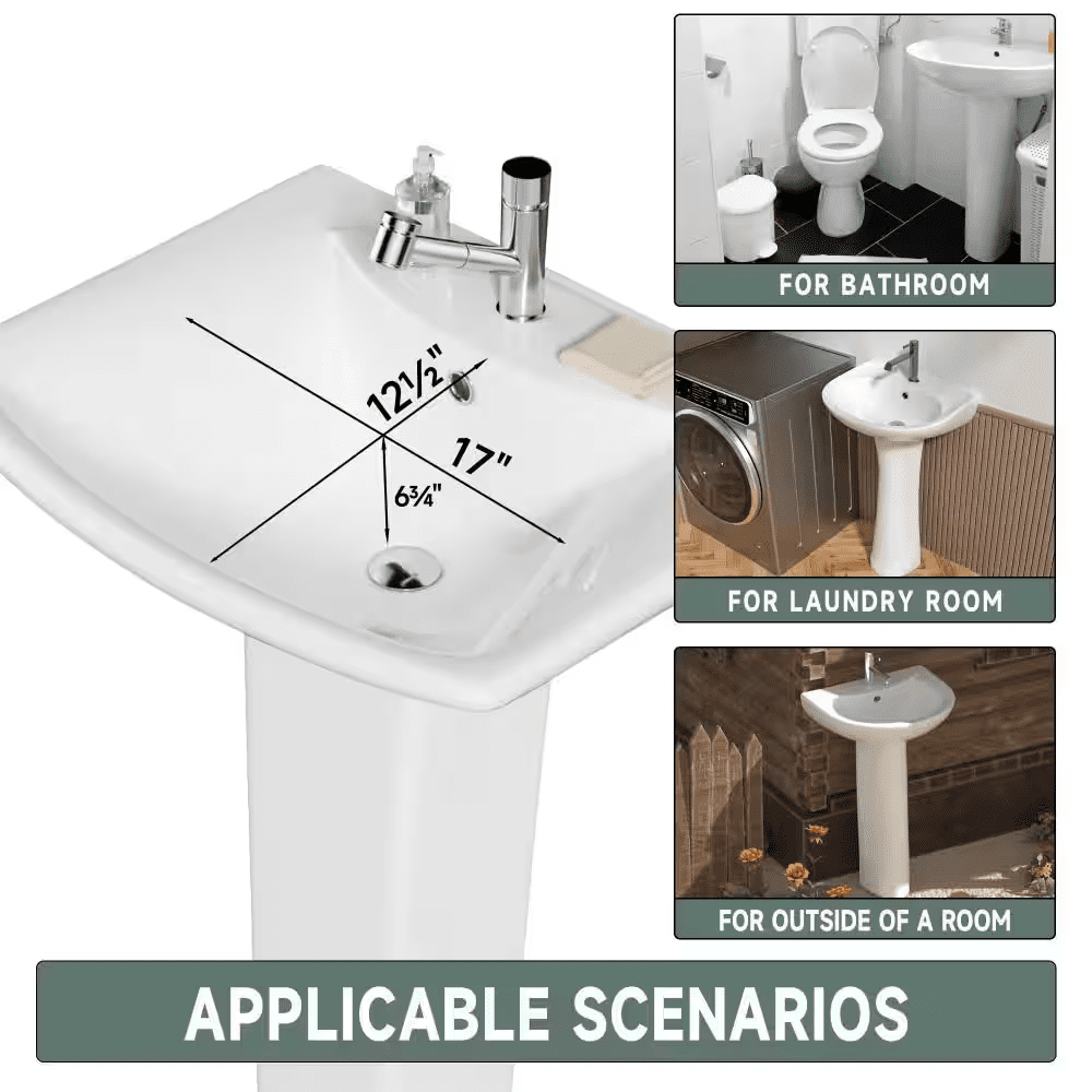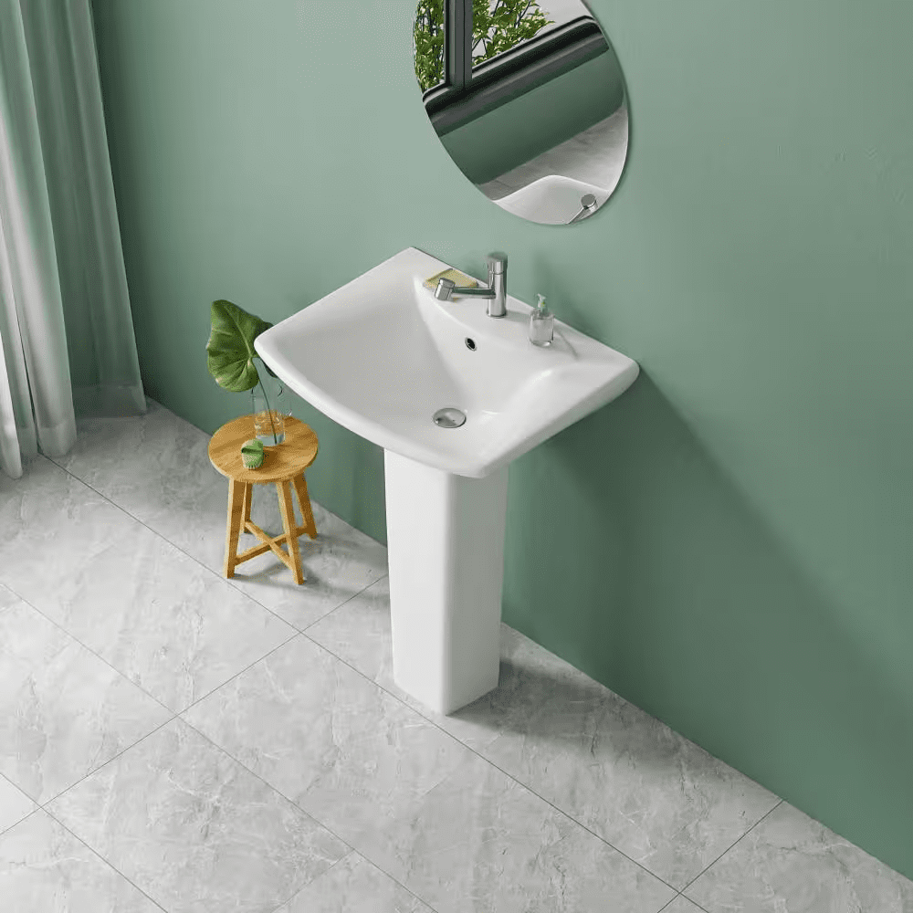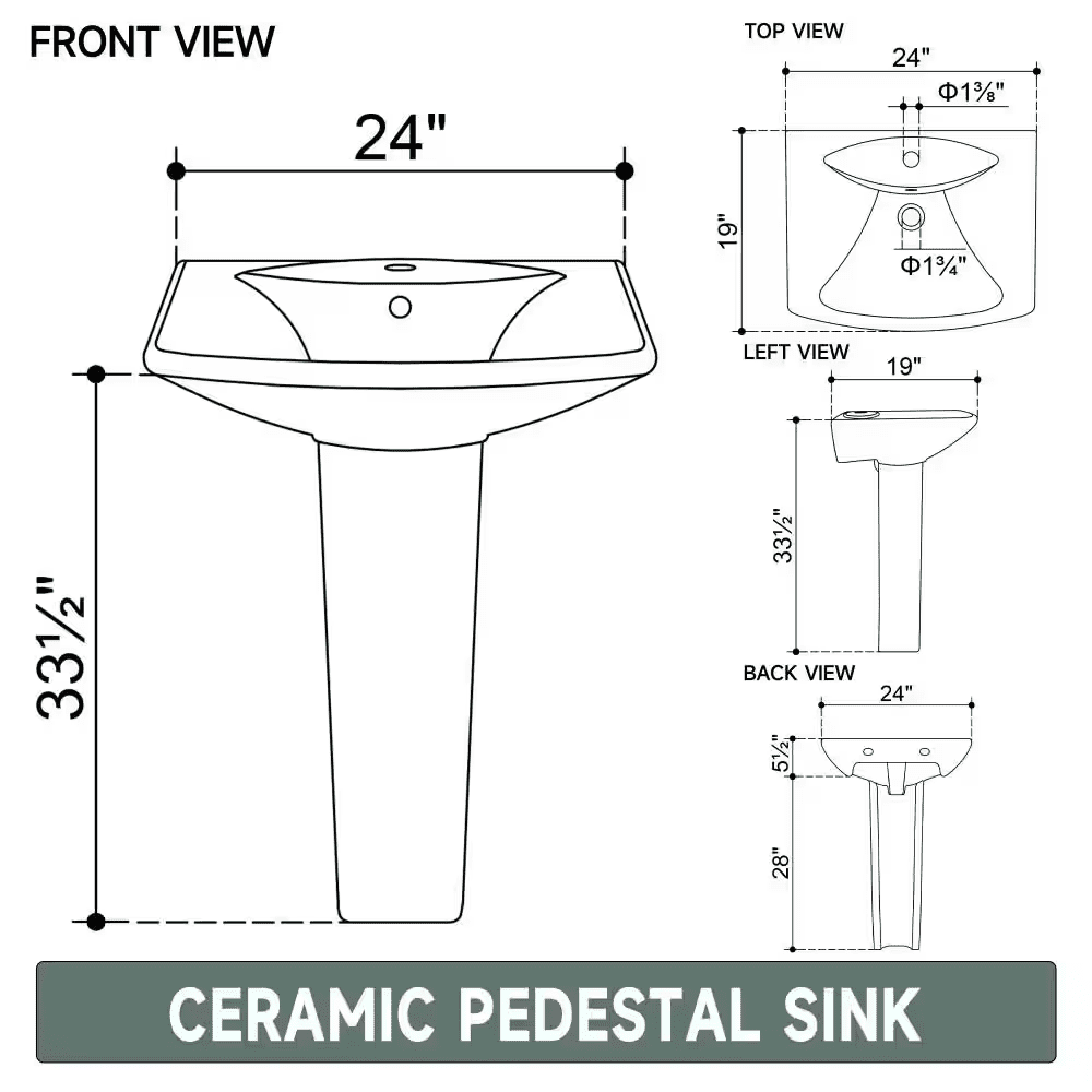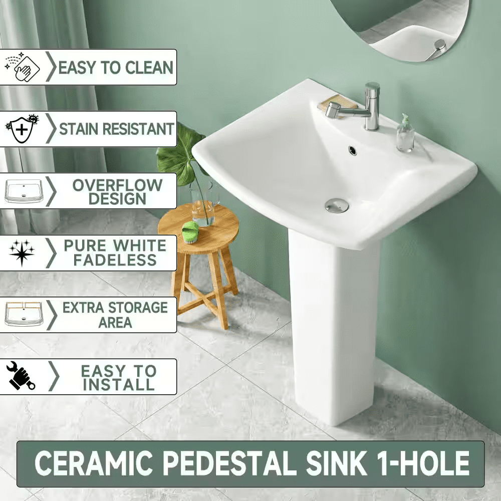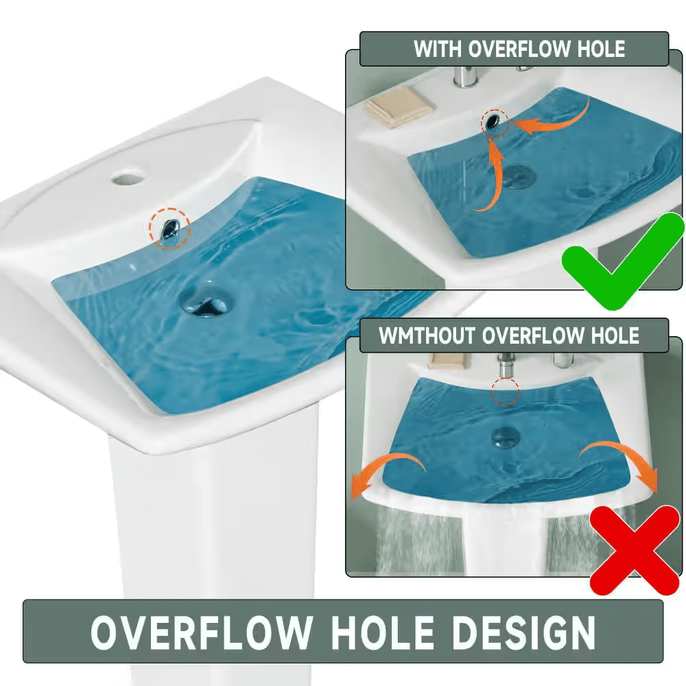 The Vomlor Pedestal Sink Collection perfectly blends traditional elegance with modern simplicity, offering a versatile design that complements a wide range of bathroom styles. The sink features beveled edges and clean lines, highlighting its uniquely shaped basin and adding a refined touch to any bathroom. Made from high-quality vitreous China, this sink is built for lasting beauty and durability. Its non-porous, scratch-resistant finish ensures it stays looking pristine, even with daily use. Plus, installation is hassle-free with all the necessary mounting hardware included. The Vomlor pedestal sink is the perfect choice for bathrooms with both classic and contemporary designs.