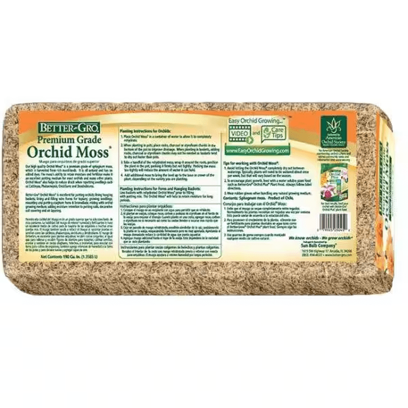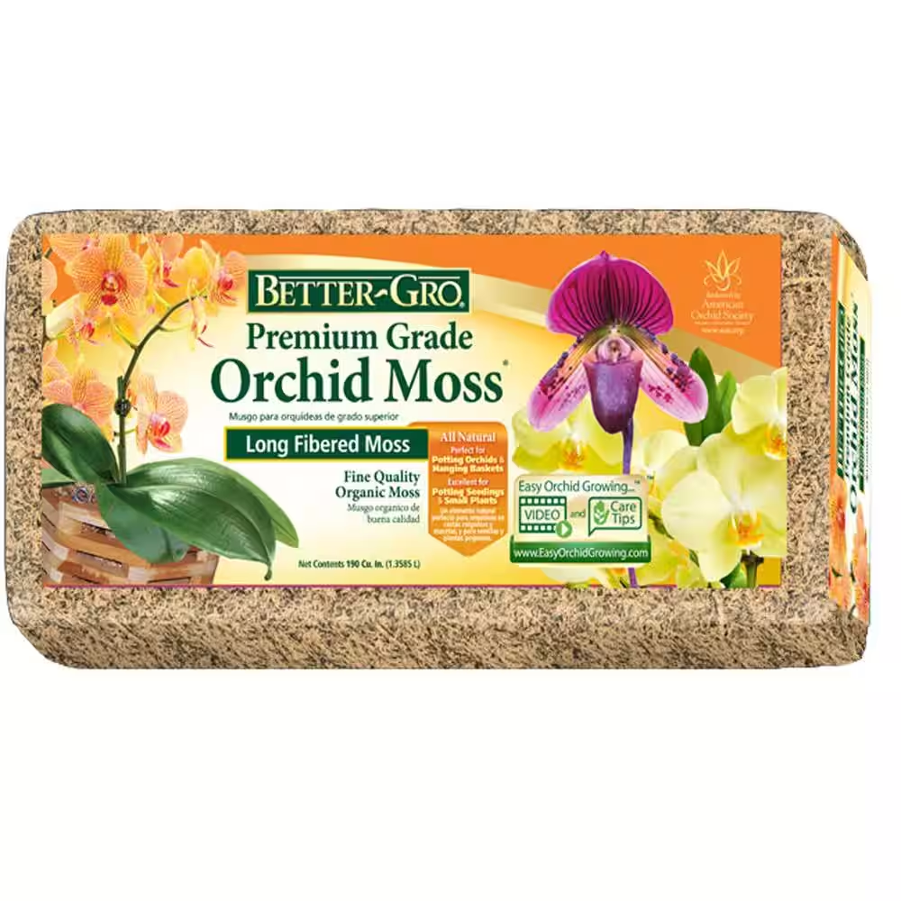 This 190 cu. in. Better-Gro Orchid Moss is great for growing orchids and using in hanging baskets. The organic sphagnum moss retains moisture and inhibits bacterial growth, which is crucial when nursing young or vulnerable plants. It reduces shock which is crucial when re-potting seedlings. The moss has a soft, feathered appearance which makes it good for use in wire or cedar baskets.