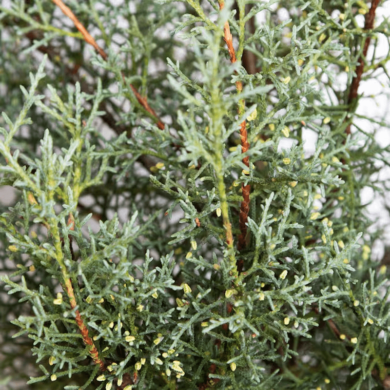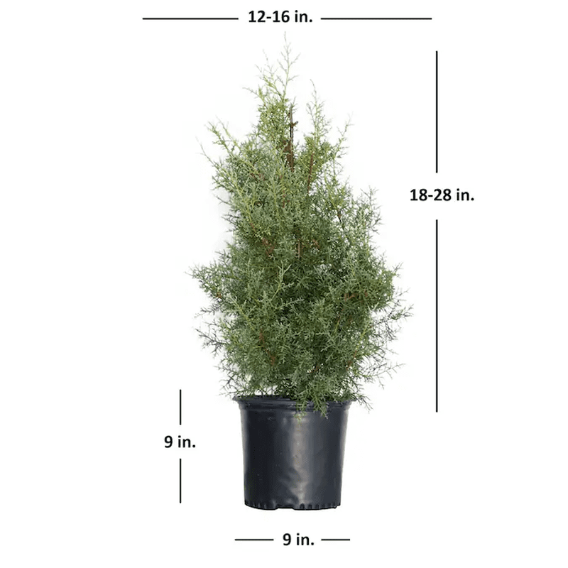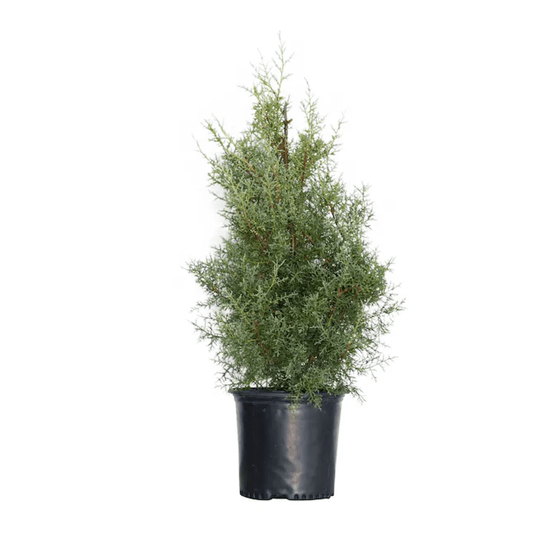 The Carolina Sapphire Arizona Cypress is a fast-growing evergreen coniferous tree that adds a touch of sophistication and form to any outdoor space. Renowned for its elegant pyramidal shape and fragrant blue-green foliage, this exceptional variety, scientifically known as Cupressus arizonica ‘Carolina Sapphire,’ is a true gem in landscaping. With its soft, airy texture and vibrant hues, the Carolina Sapphire Cypress captivates attention, making it an excellent choice for creating expansive hedges, privacy screens, or as a stunning large focal point in your garden. Its ability to thrive in hot, dry conditions and adapt to diverse soil types makes it a dependable and fuss-free addition to gardens of all kinds. This fast-growing evergreen tree can soar up to 40 feet tall, adding 2 to 4 feet in height each year. Planting this conifer tree is a breeze – simply prepare a hole twice the width of the pot, blend in nutrient-rich garden soil with your native soil, and ensure the top of the root ball sits half an inch above ground level when backfilling. Come springtime, a slow-release granular fertilizer will keep it in prime condition. Ideal for creating natural boundaries between properties, the Carolina Sapphire Cypress tree offers privacy and enriches your outdoor space with its enchanting foliage and delightful aroma. Whether as a standalone feature or a series of living barriers, incorporating these majestic trees into your landscape design elevates its charm and character.