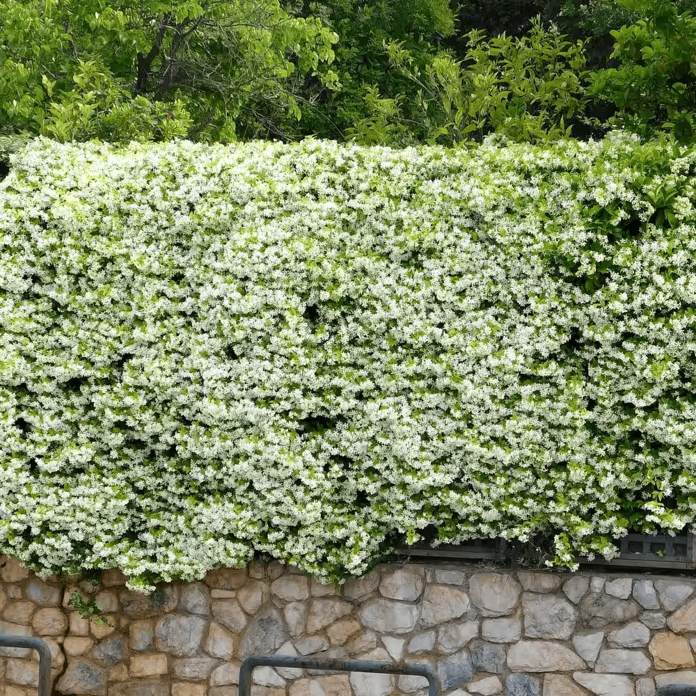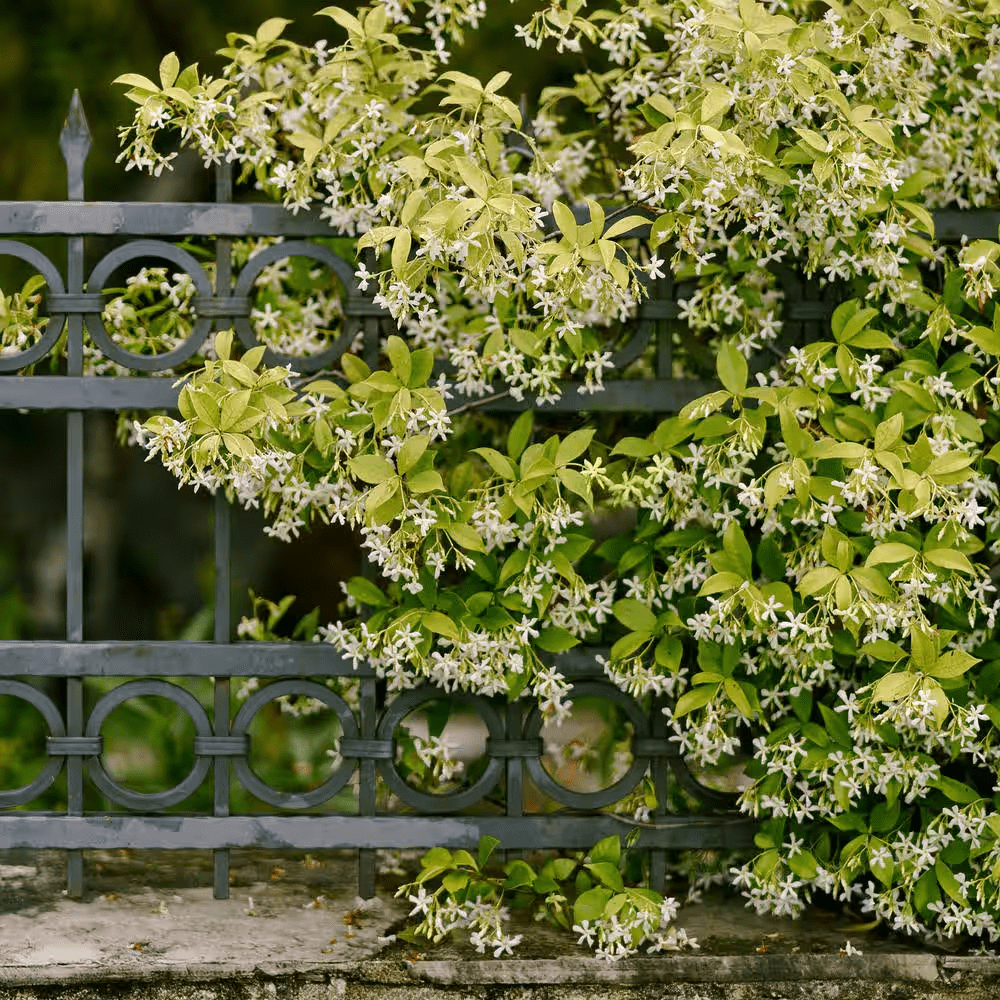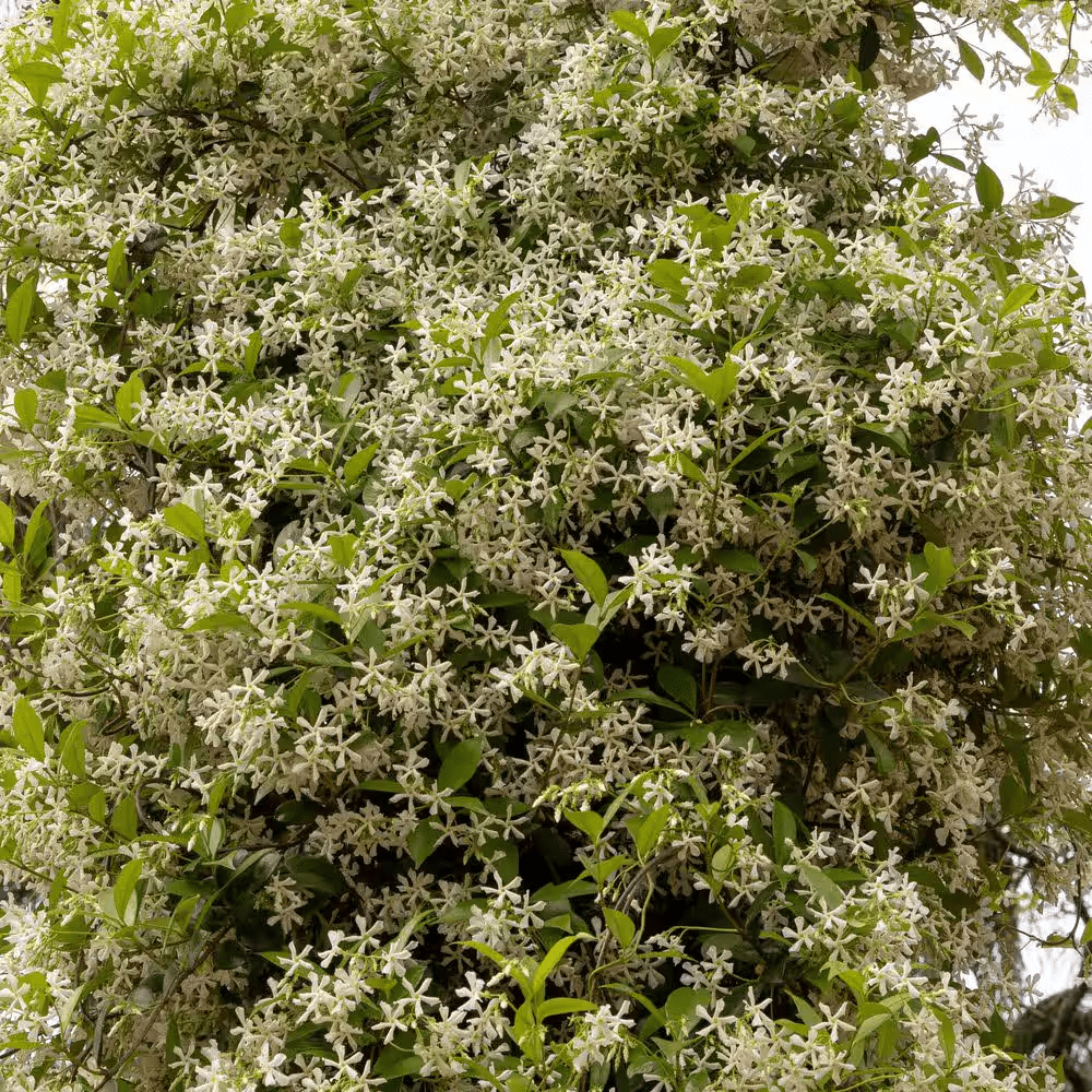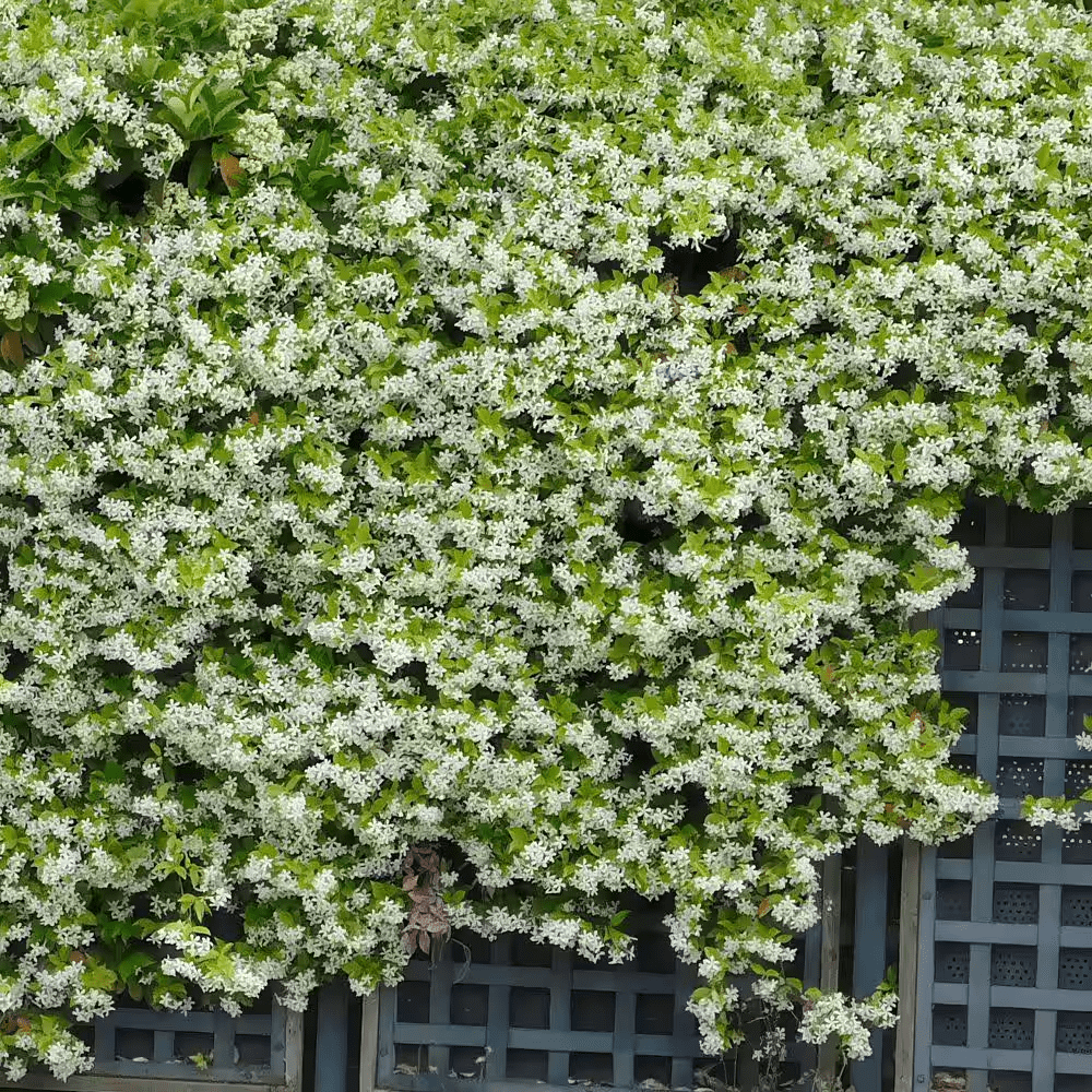 Unique and versatile, Trachelospermum Star Jasmine is a must-have for any landscape. Grown as a climbing vine, it covers arbors, trellises, pergolas and fences with delicate blossoms and foliage. Allowed to sprawl as a groundcover, it blankets the garden floor with deep green leaves and sweetly fragrant springtime flowers. In cool areas, consider planting in a container and overwintering the plant indoors.
