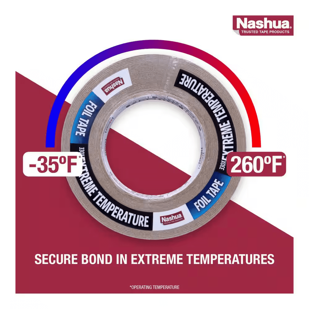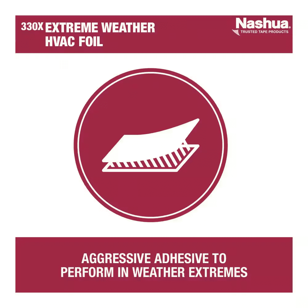 Professional results that a DIYer can be proud of begins with 330x Extreme Weather HVAC Foil Tape by Nashua. This foil tape is ideally suited for sealing joints and seams in air conditioning, heating, refrigeration and ventilation systems. It is suitable for a number of insulation applications in extreme weather conditions and climates. Nashua Tape. Trusted by professionals. DIY approved. Count on Nashua to get the job done right.