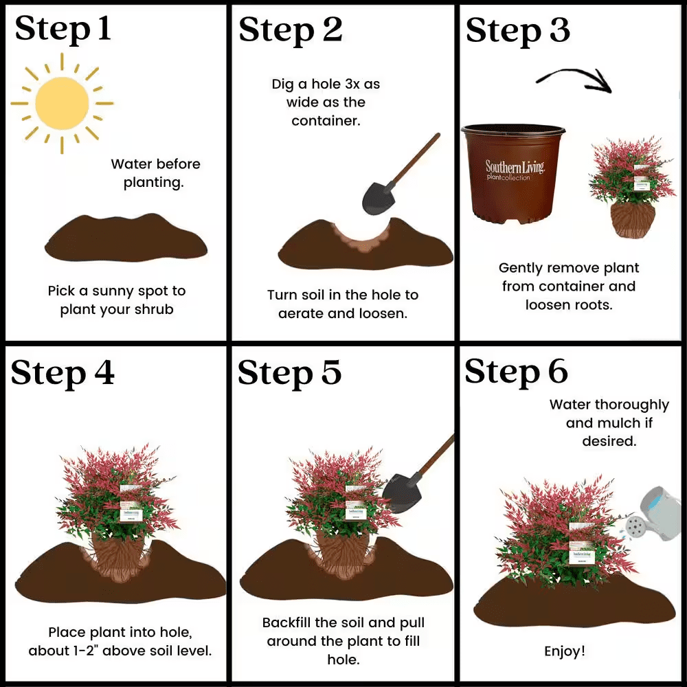 The Obsession Nandina from the Southern Living Plant Collection is a new and unusual variety of the classic Nandina domestica. The Obsession features unique scarlet-red young foliage and blue-green mature foliage. This gorgeous medley brings tremendous texture and color-appeal to any landscape or container garden all year long! This is because it’s naturally evergreen, so it won’t leave your landscape barren once winter rolls around. It’s particularly hardy in favorable landscapes and it has a naturally compact growth habit that doesn’t require any extra pruning. Expect this shrub to max out at 3-4′ H x 3-4′ W. This is a welcome change from traditional nandinas that are known for getting tall and leggy. It’s great for usage as a medium-height accent, hedge, mass planting, or border plant, and will really shine when planted with contrasting colored plants. Use it to soften hard edges in your landscape, whether that’s at the base of a building or around a birdbath!