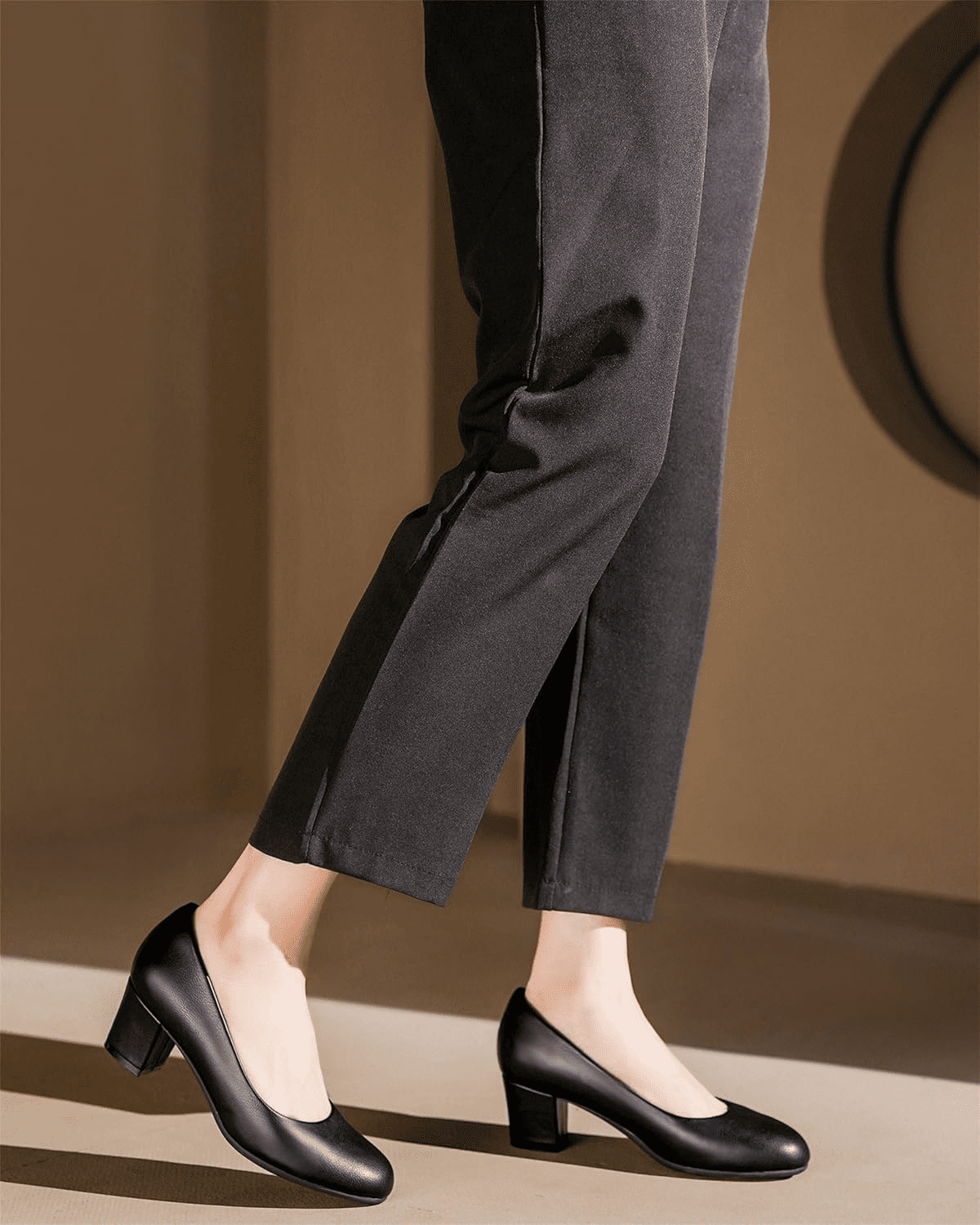 Ladies’ wardrobe essential business office work shoes. A classic chunky heel for walking and standing.