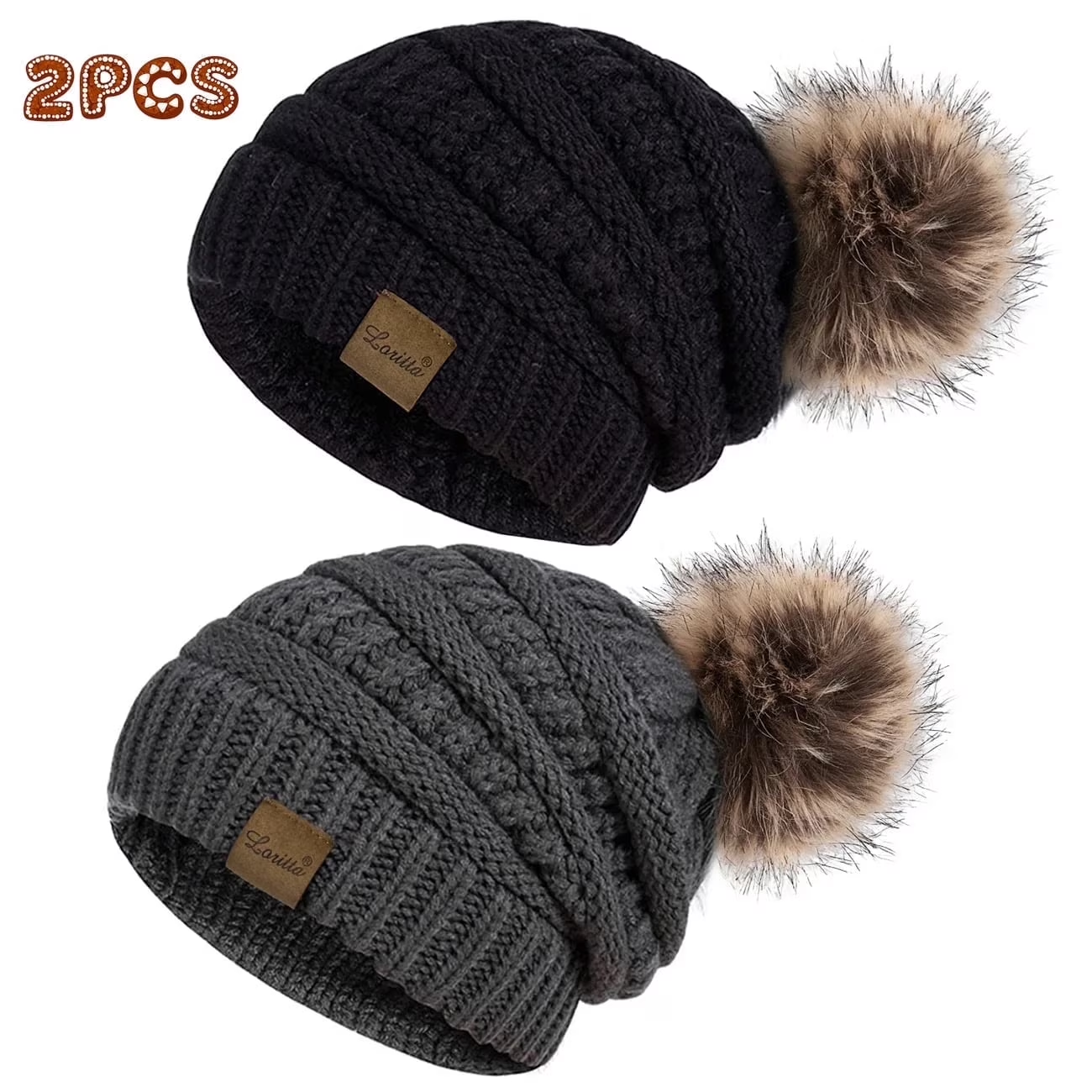 - Warm and Fashion: These two beans for women feature a double-layer design, a soft fleece lining, and a fine knit pattern, both visually appealing and warm. Women hats with pom pom are very cute, with rich and smooth fur that makes people look cute and playful.