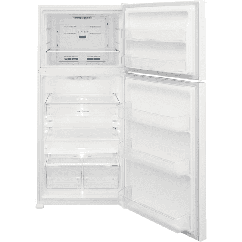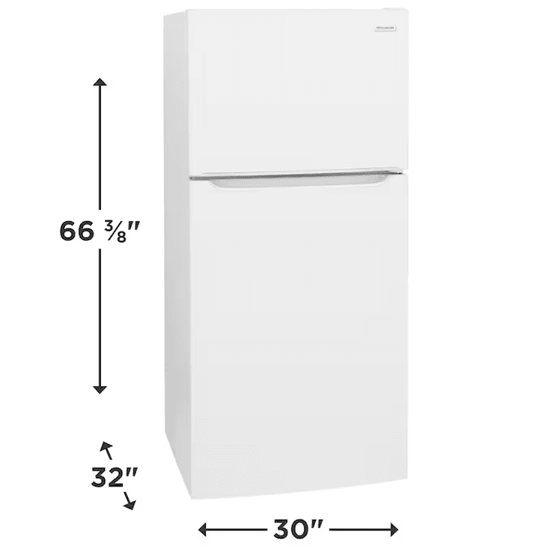 The Frigidaire 20 cubic foot top freezer refrigerator fits in the same sized cutout as a traditional 18 cu. Ft model (30-in width x 66-in height cutout). This refrigerator features the EvenTempâ„¢ Cooling System, precise temperature control which keeps food at one ideal temperature. Spacious interior storage options include a full-width deli drawer, generous door bins, and a full-width glass freezer shelf.