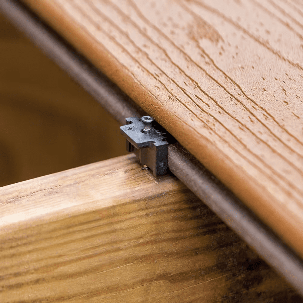 - Hidden fasteners for a fastener-free look and clean board spacing