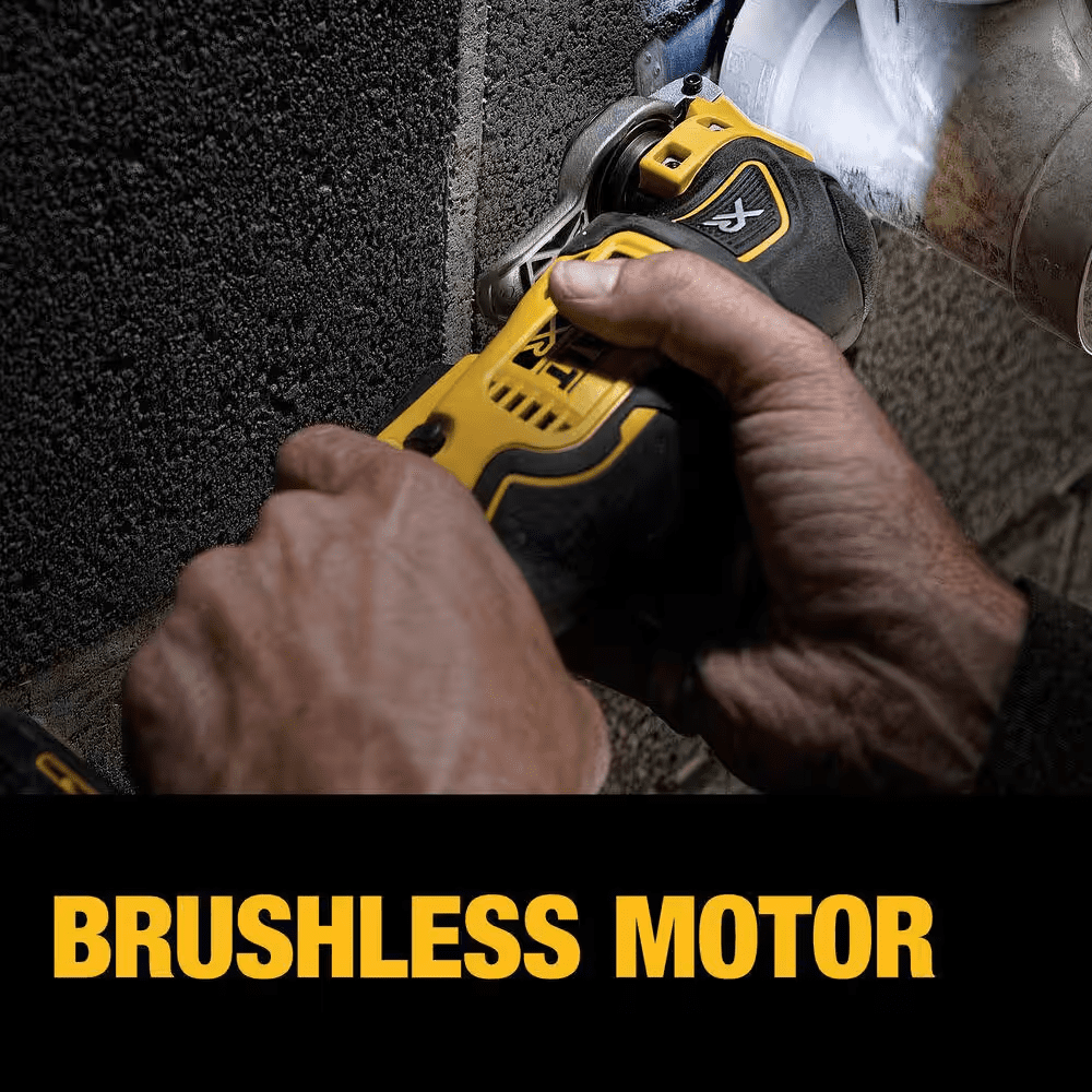 This 20-Volt MAX XR 3-Speed Cordless Oscillating Multi-Tool Kit provides up to 57% more runtime than similar brushed tools because of its powerful brushless motor. The Quick-Change accessory system allows you to change blades quickly and easily, and with the universal accessory adaptor, it’s compatible with most oscillating tool accessories. The DUAL-GRIP variable-speed trigger and 3-speed selector provide ultimate speed and application control, and the bright LED illuminates dark workspaces. This kit includes a universal accessory adapter, 2 blades, battery, charger, and kit bag.