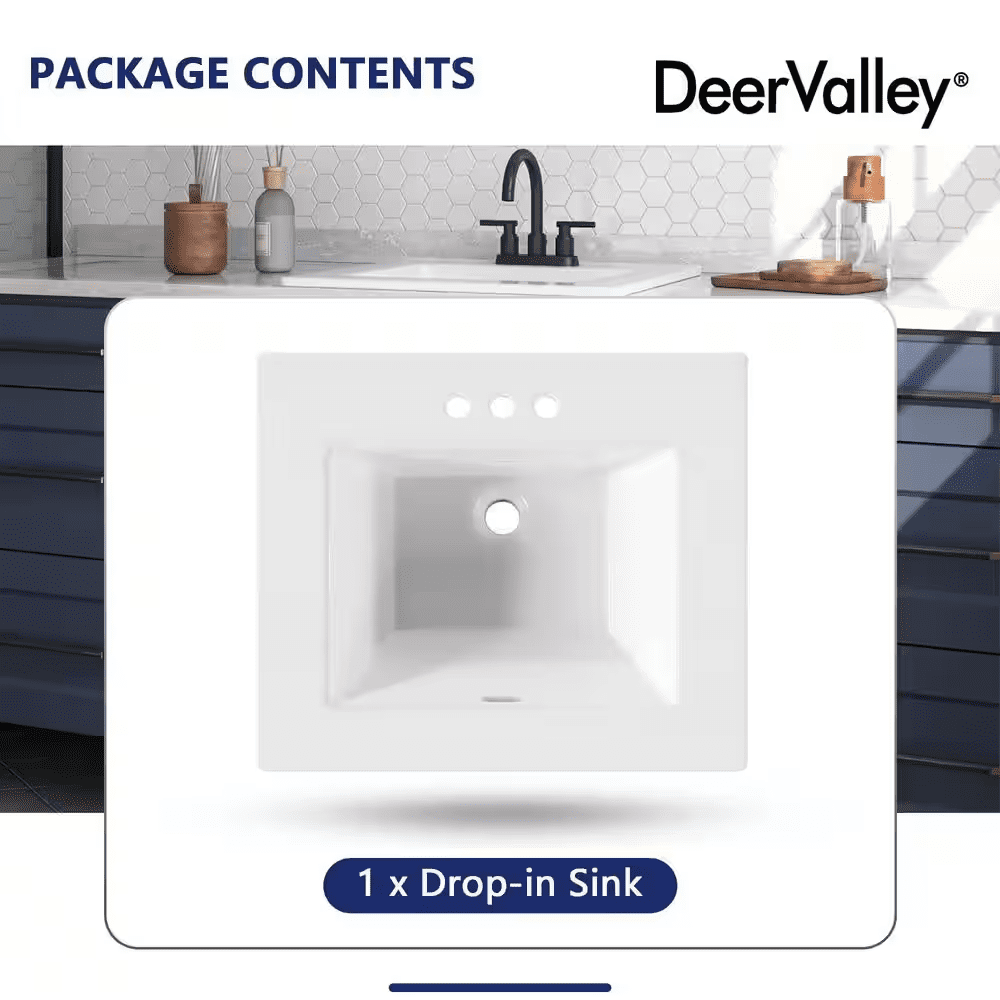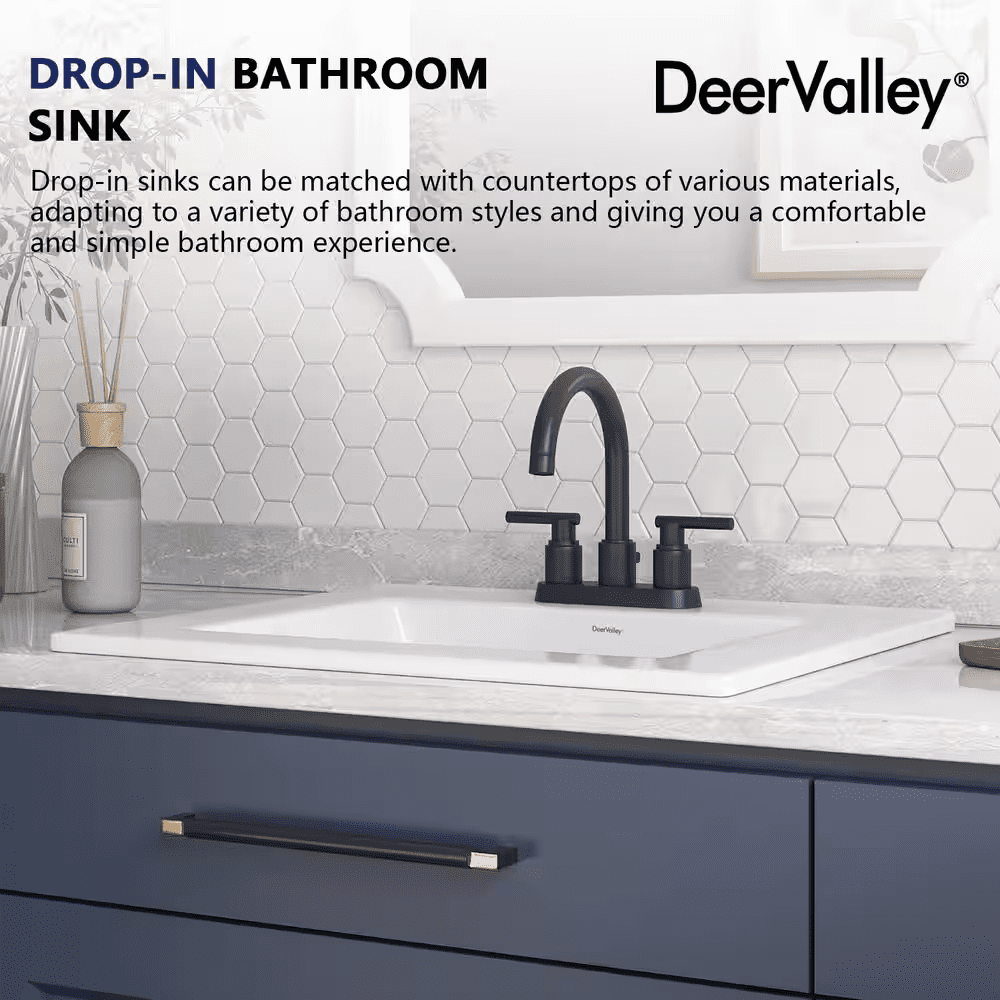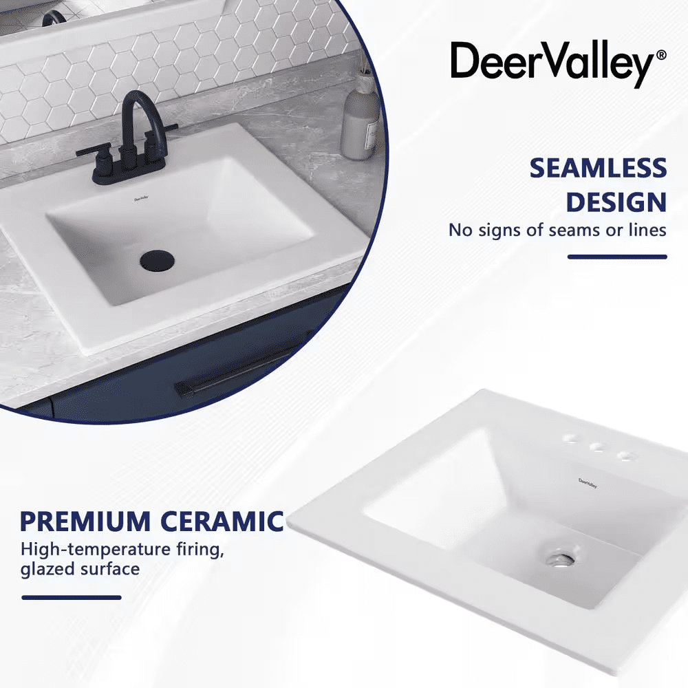 DeerValley Rectangular 7.21 in. H Drop In Sink is made of premium-quality fireclay material. That’s extremely resistant to scratches and stains, and will not fade over time. The smooth non-porous glazed surface makes cleaning easy and softly rounded corners effectively prevents dust accumulation. The minimalist and elegant design decorates your bathroom while illuminating your living space in style.
