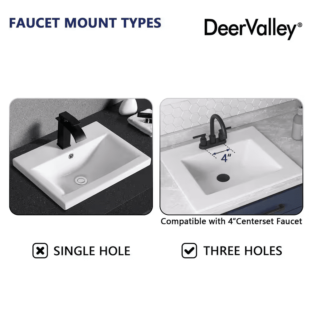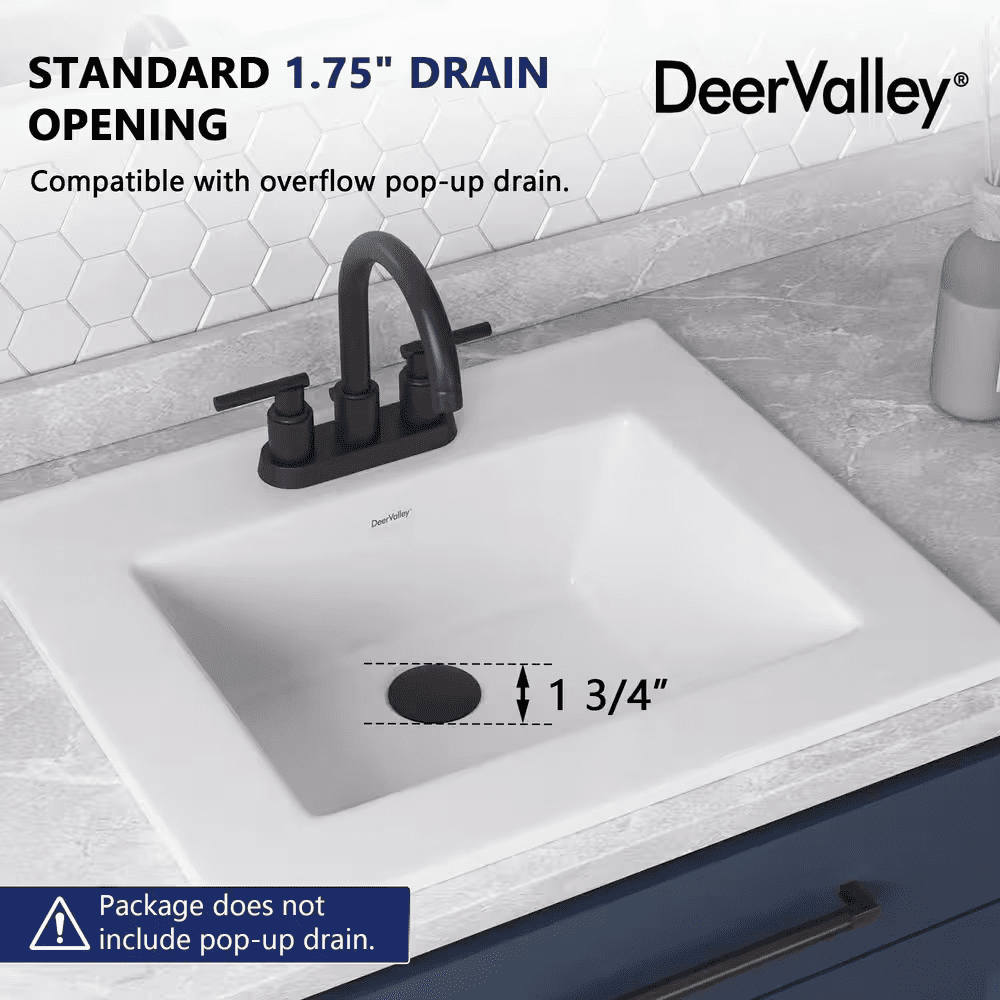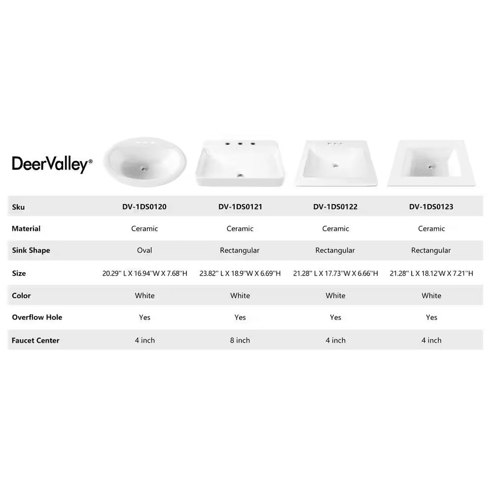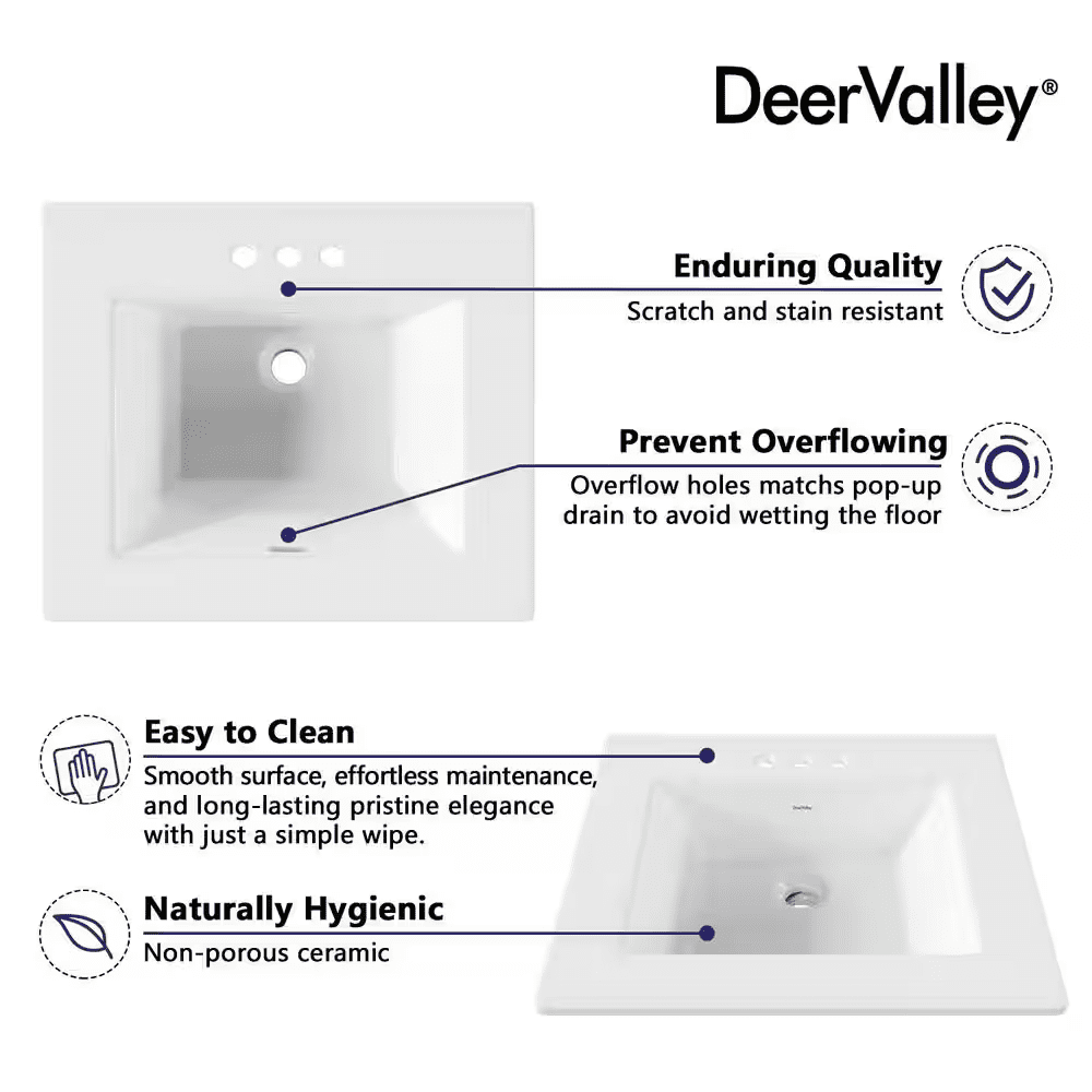 DeerValley Rectangular 7.21 in. H Drop In Sink is made of premium-quality fireclay material. That’s extremely resistant to scratches and stains, and will not fade over time. The smooth non-porous glazed surface makes cleaning easy and softly rounded corners effectively prevents dust accumulation. The minimalist and elegant design decorates your bathroom while illuminating your living space in style.