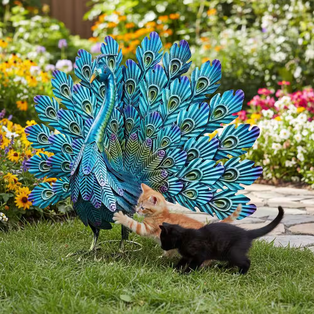 This stunning metal peacock features a vibrant blue-green gradient that catches the sunlight and adds a touch of elegance to any space. Its unique color and design will make your garden or home stand out, turning heads wherever it’s displayed. The peacock is a perfect combination of beauty and charm, bringing a graceful presence to your outdoor or indoor decor.