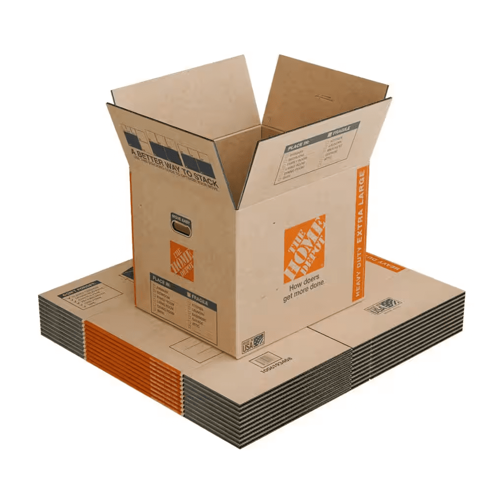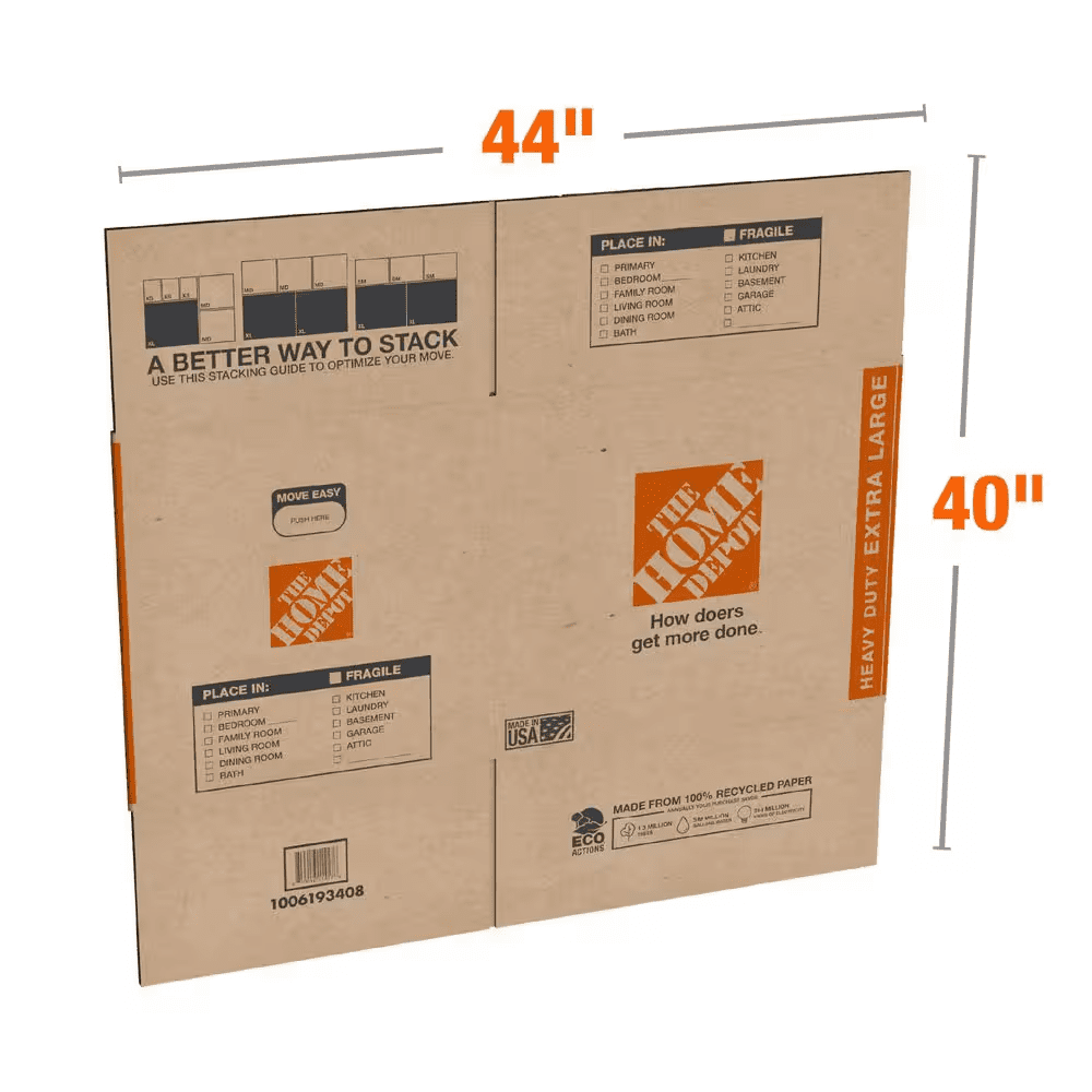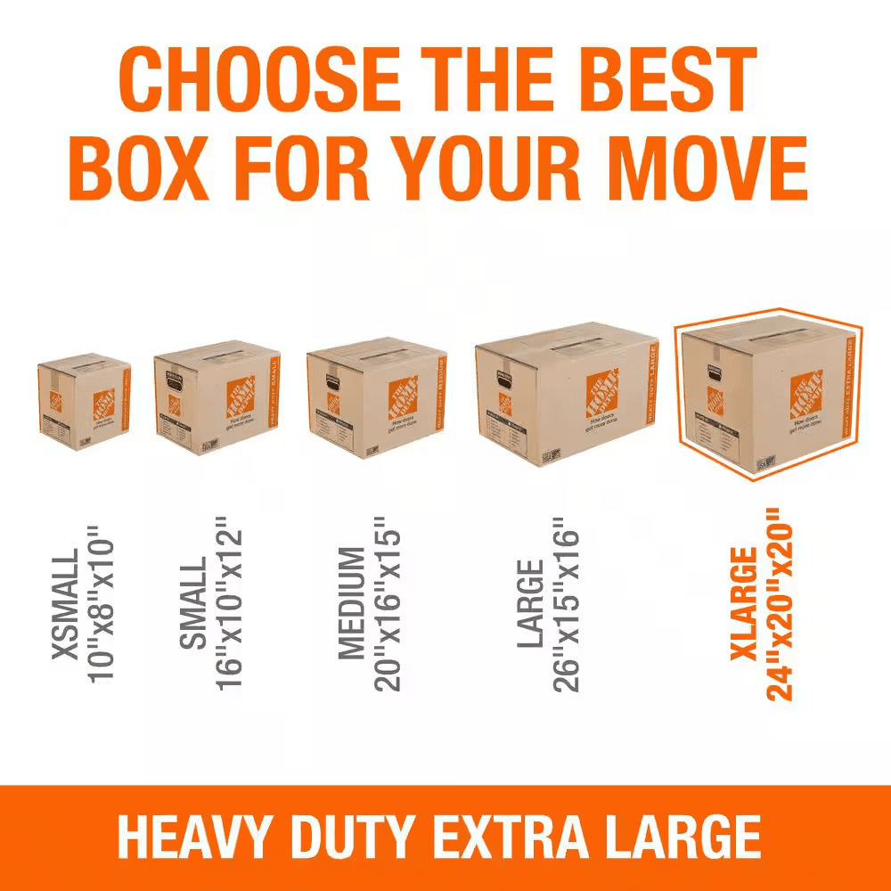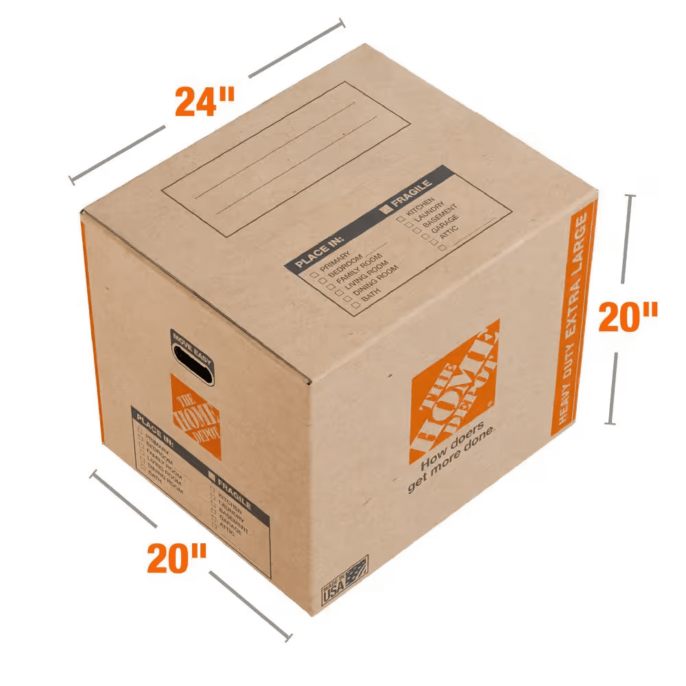 The Home Depot Heavy-Duty Extra-Large Moving Box is great for long-term storage and for moving heavy, valuable, or fragile items. The double wall heavy-duty construction is perfect for storing items in non-climate controlled areas such as attics, basements, garages, and mini-storage warehouses. Ideal for kitchen items, small appliances, frames, and more. This box is crafted from 100% recycled material for an environmentally responsible moving and storage option.