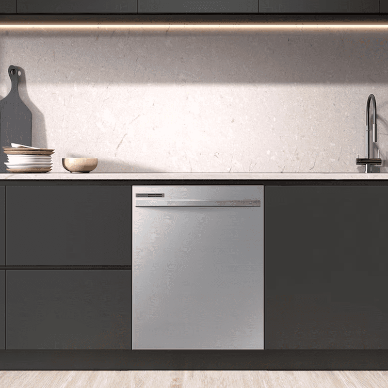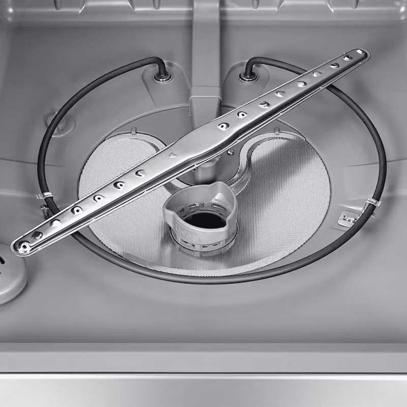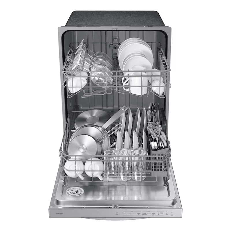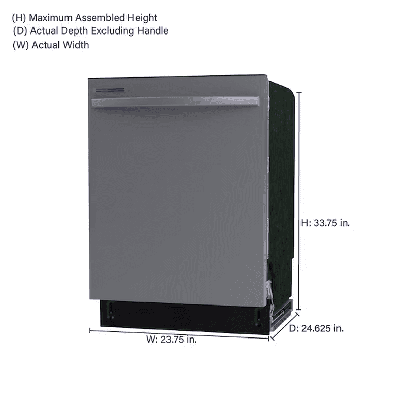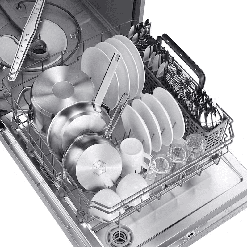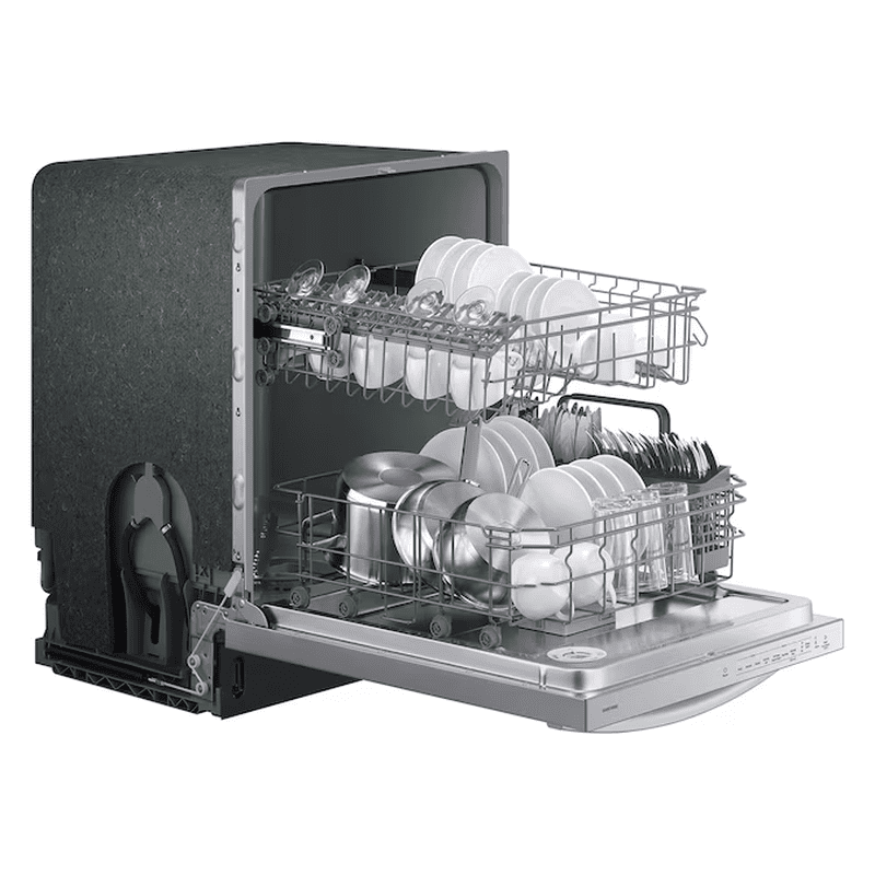 Thoughtfully designed with features that include a durable hybrid stainless interior door and the convenience of a height-adjustable top rack, which fits items of varying size and shape. With an extra-quiet dishwasher, enjoy a peaceful kitchen – without the background noise.