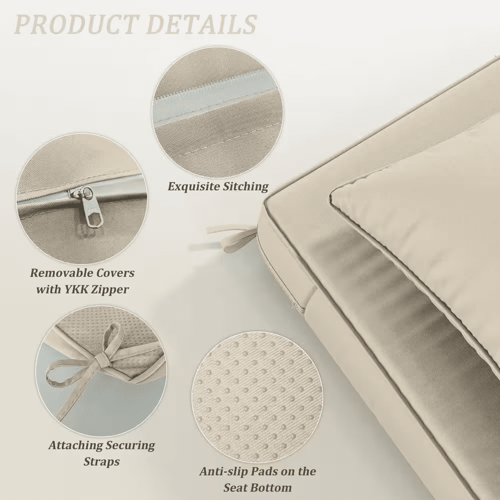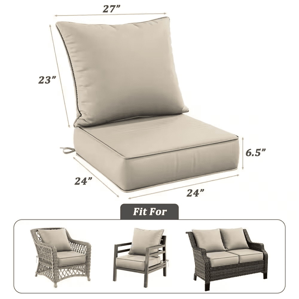 Upgrade your patio with our 2-piece Deep Seating Cushion Set, designed for unbeatable comfort and resilience. Featuring a thick 6.5″ seat cushion and a plush back pillow, this set transforms any outdoor space into a cozy retreat. We offer a one-year guarantee against defects – shop with confidence!