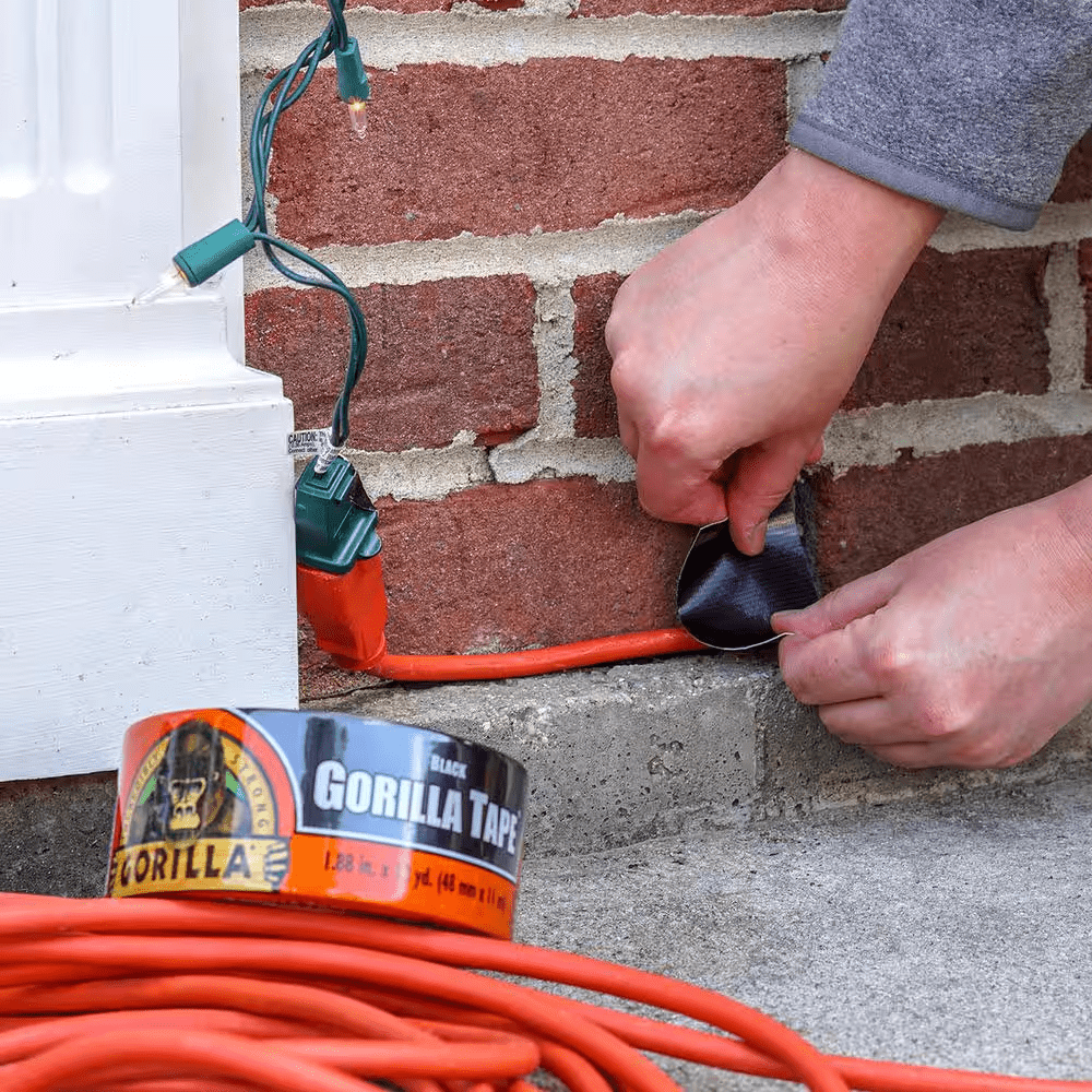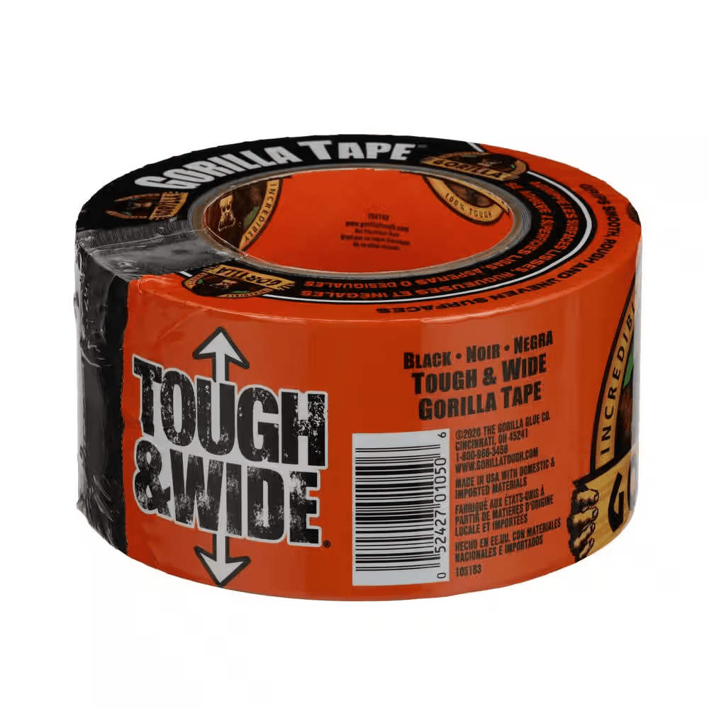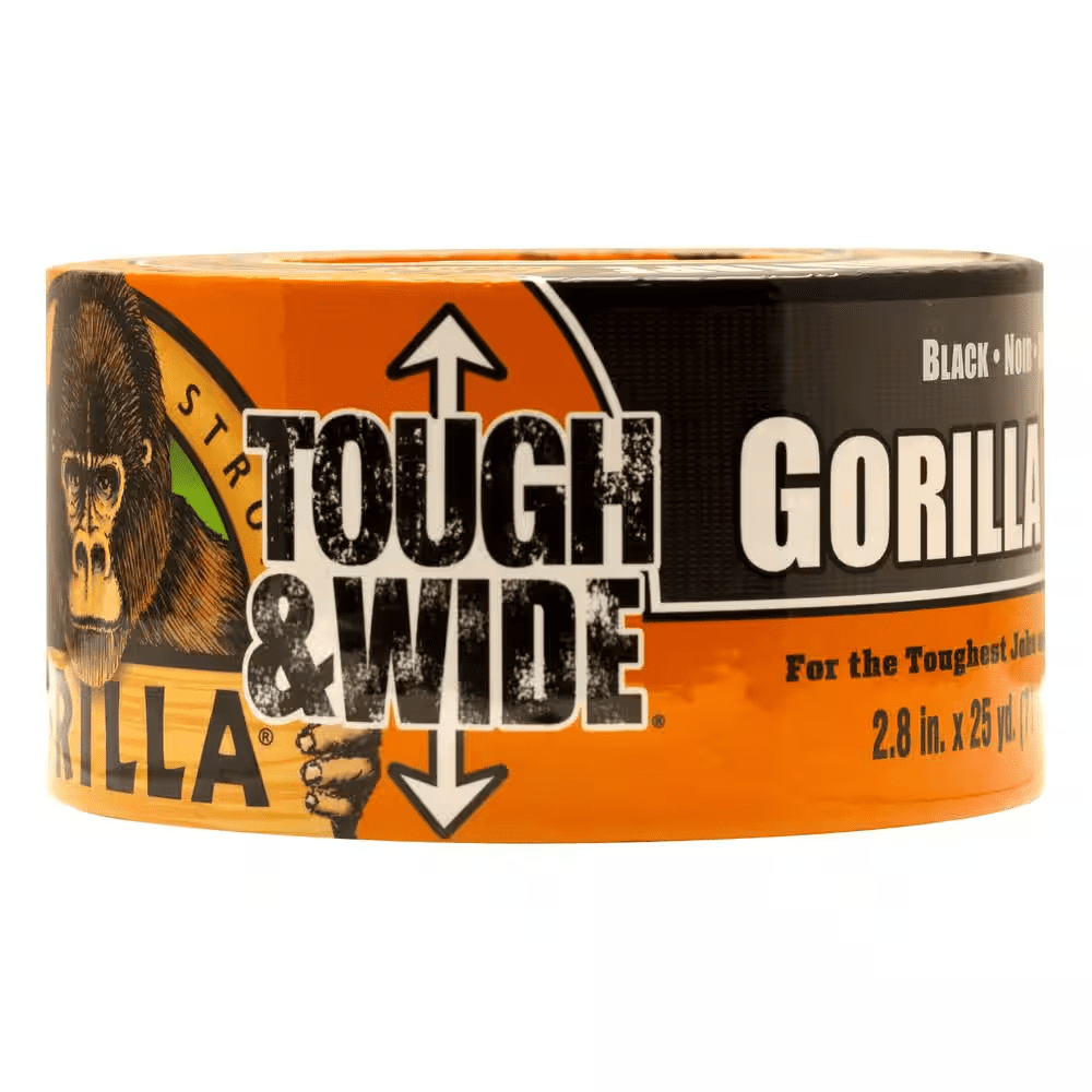 Gorilla 25 yard Tough and Wide Black Duct Tape is 3X stronger for a hold that lasts. Made with double-thick adhesive, strong reinforced backing and a tough all-weather shell, this duct tape is great for projects and repairs both indoors and out. Gorilla tape sticks to smooth, rough and uneven surfaces, including wood, stone, stucco, brick, metal and vinyl. Gorilla Tape, for the toughest jobs on planet Earth.