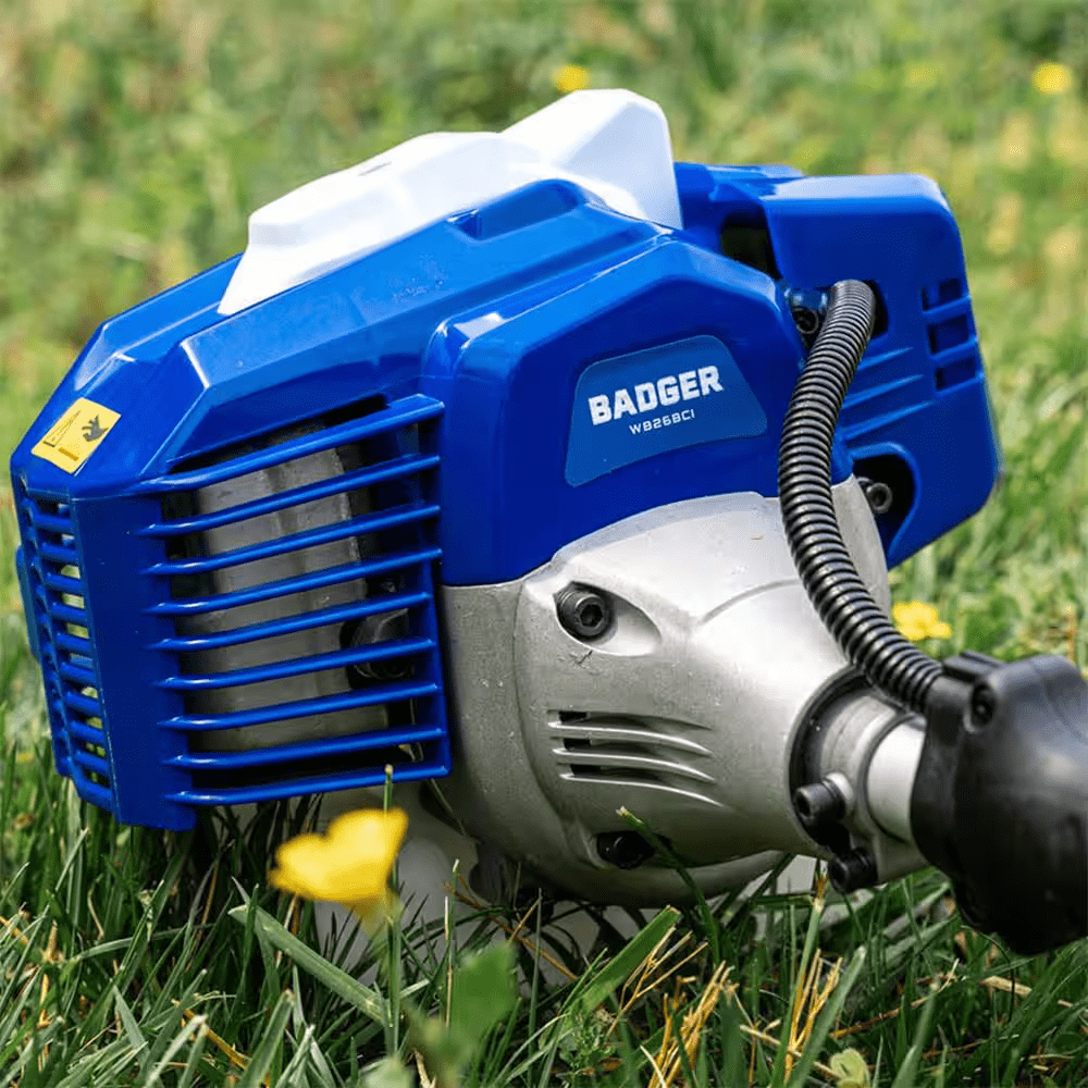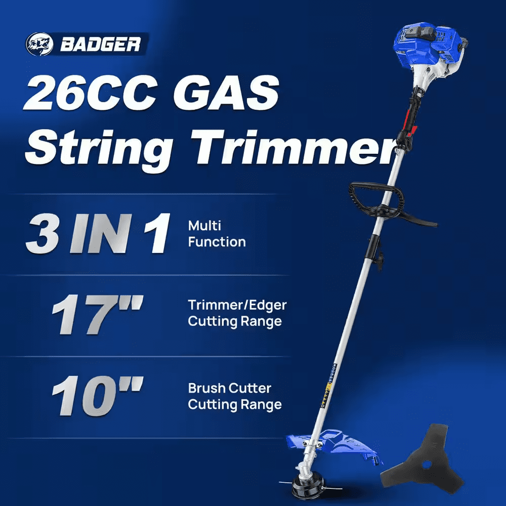 The Wild Badger Power Straight Shaft 2-in-1 Grass String Trimmer and Brush Cutter is a versatile, powerful tool. This multi-tool has a grass trimmer attachment for detail work along borders and a brush cutter blade for heavier grasses and brush clearing. This tool includes a harness to relieve the strain on your arms and improve stability. The full crank engine reduces emissions, increasing fuel efficiency and delivering longer life. The transmission is supported by a vented aluminum casing which greatly reduces vibration allowing you to work in comfort until the job is done. The attachment capable straight shaft is built with a robust aluminum tube and connection point which is lightweight and durable. The tap-and-go trimmer head with easy load allows for quick line feed for the twin line cutting system. Replacing the line will no longer eat up precious daylight and will give you more time to get your lawns and landscaping looking clean. Notes about the product: This machine takes a mix of both gasoline and oil, other attachments and accessories not included.