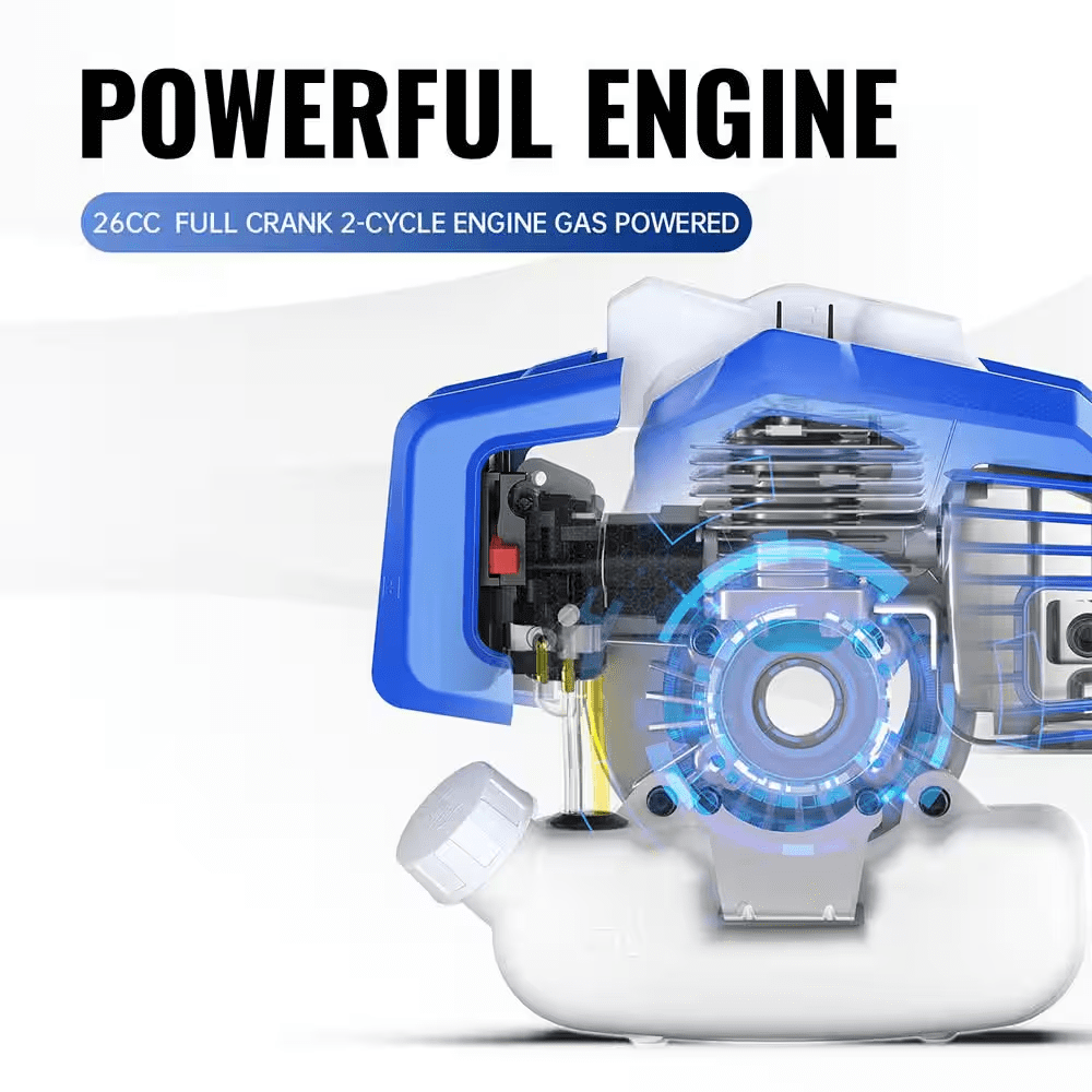 - Strong engine: 26cc Full Crank 2-cycle gas.