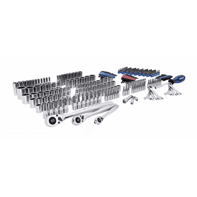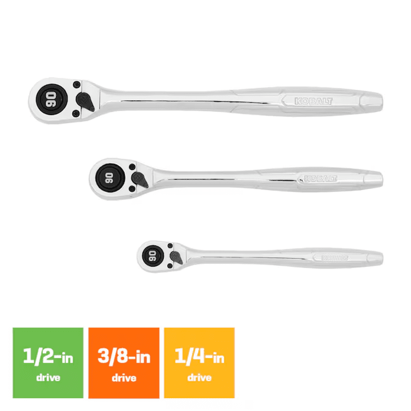 - Kobalt’s 297-piece, 3-drive mechanic’s tool set features 1/4-in, 3/8-in and 1/2-in drive sockets, ratchets and other drive tool accessories