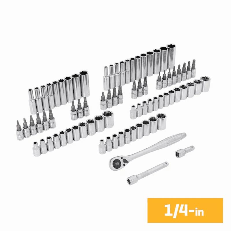 - This set includes three (3) 90-tooth ratchets, over one hundred (106) SAE and metric 6- and 12-point sockets, thirty-six (36) bit driver sockets, six (6) SAE and metric stubby combination wrenches, ratchets and a broad assortment of hex keys, insert bits, nut drivers and a magnetic driver handle