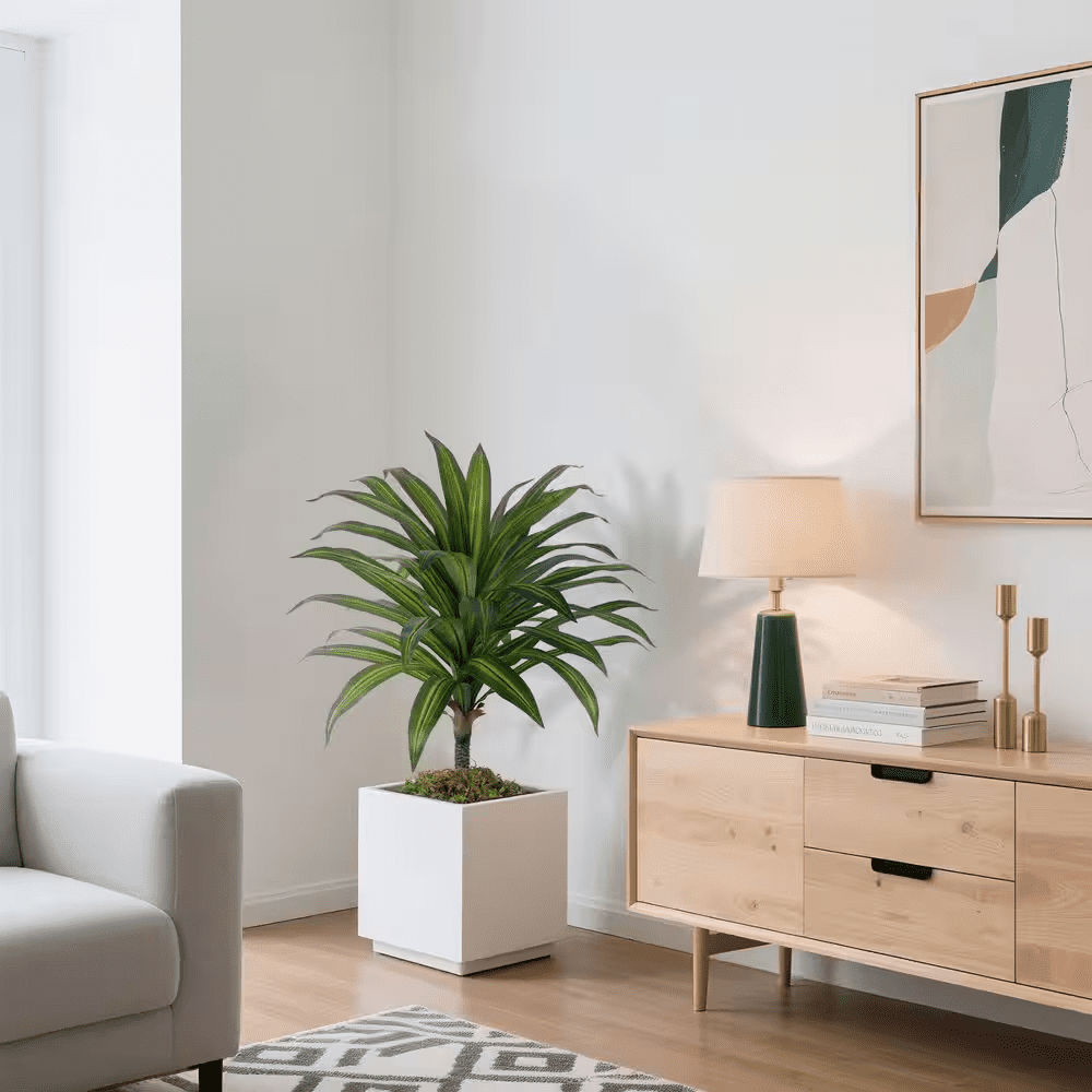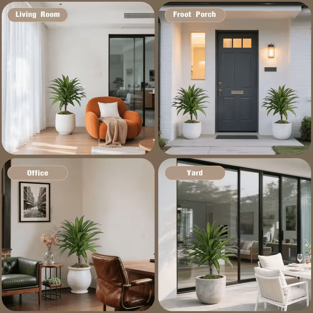 This 3.5-foot, single-stem artificial dracaena tree features a simple, elegant single-stem design with 40 leaves in alternating green and yellow, naturally drooping and curving, creating a fresh and natural look. The plant’s compact, full-bodied form takes up little space while creating a striking green effect. The one-piece structure requires no assembly and is easy to move. Requiring no watering or pruning, it saves energy while maintaining a neat and beautiful appearance year-round. It’s perfect for a variety of settings, including living rooms, office landscaping, balcony decoration, and hotel decor, adding vitality and style to any space.