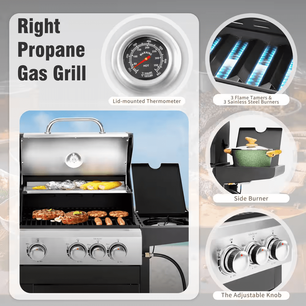 • 3 burners and 1 sideburner for versatile cooking