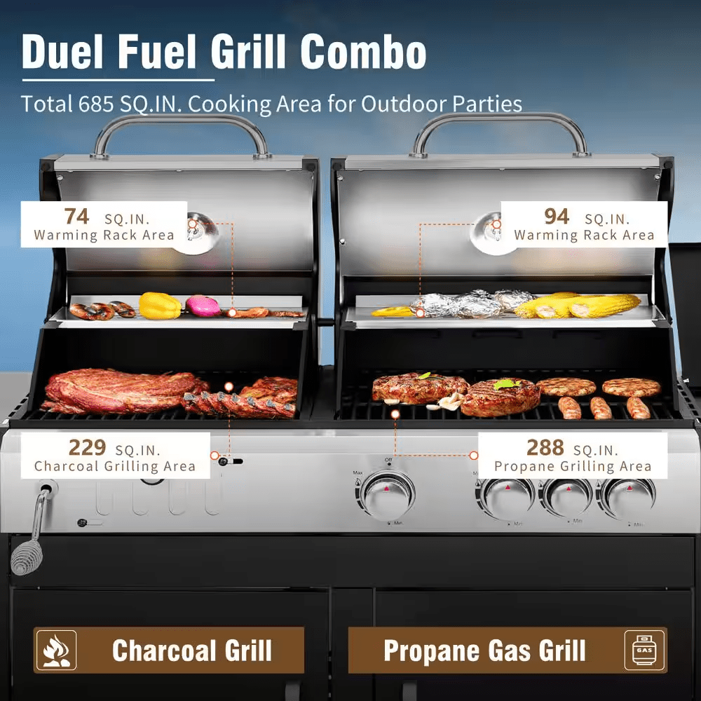 Be the first to review “3-Burner Dual Fuel Grill Propane and Charcoal in Black with Side Burner Hose and Regulator”