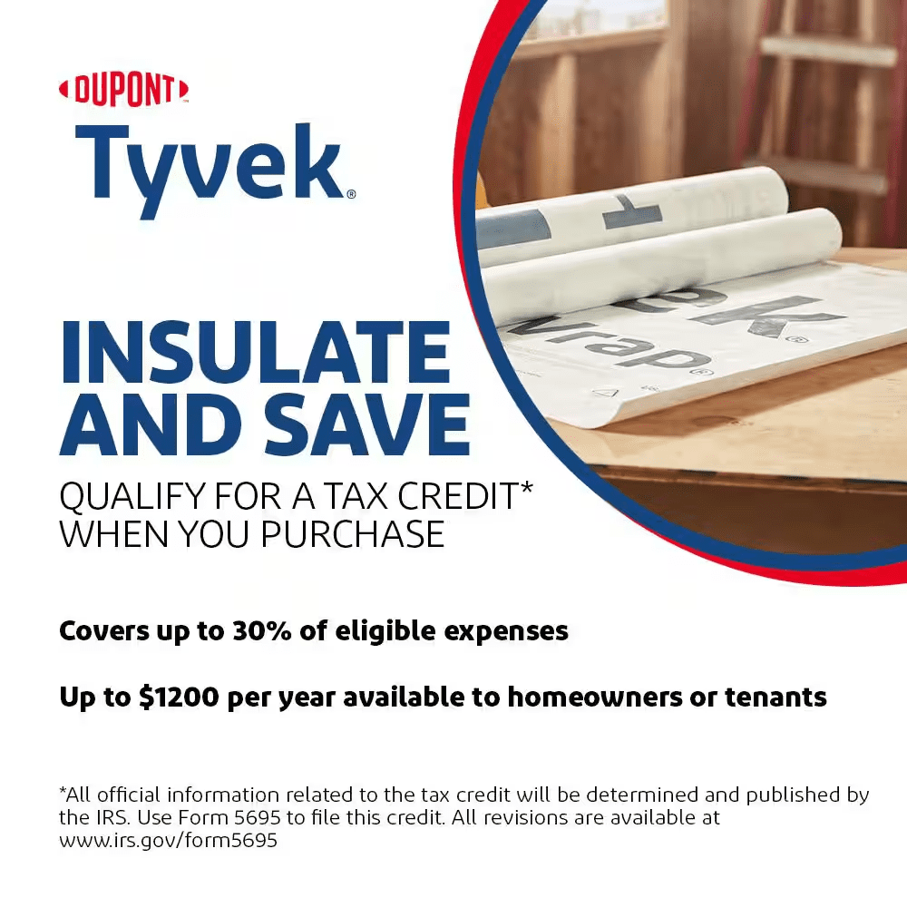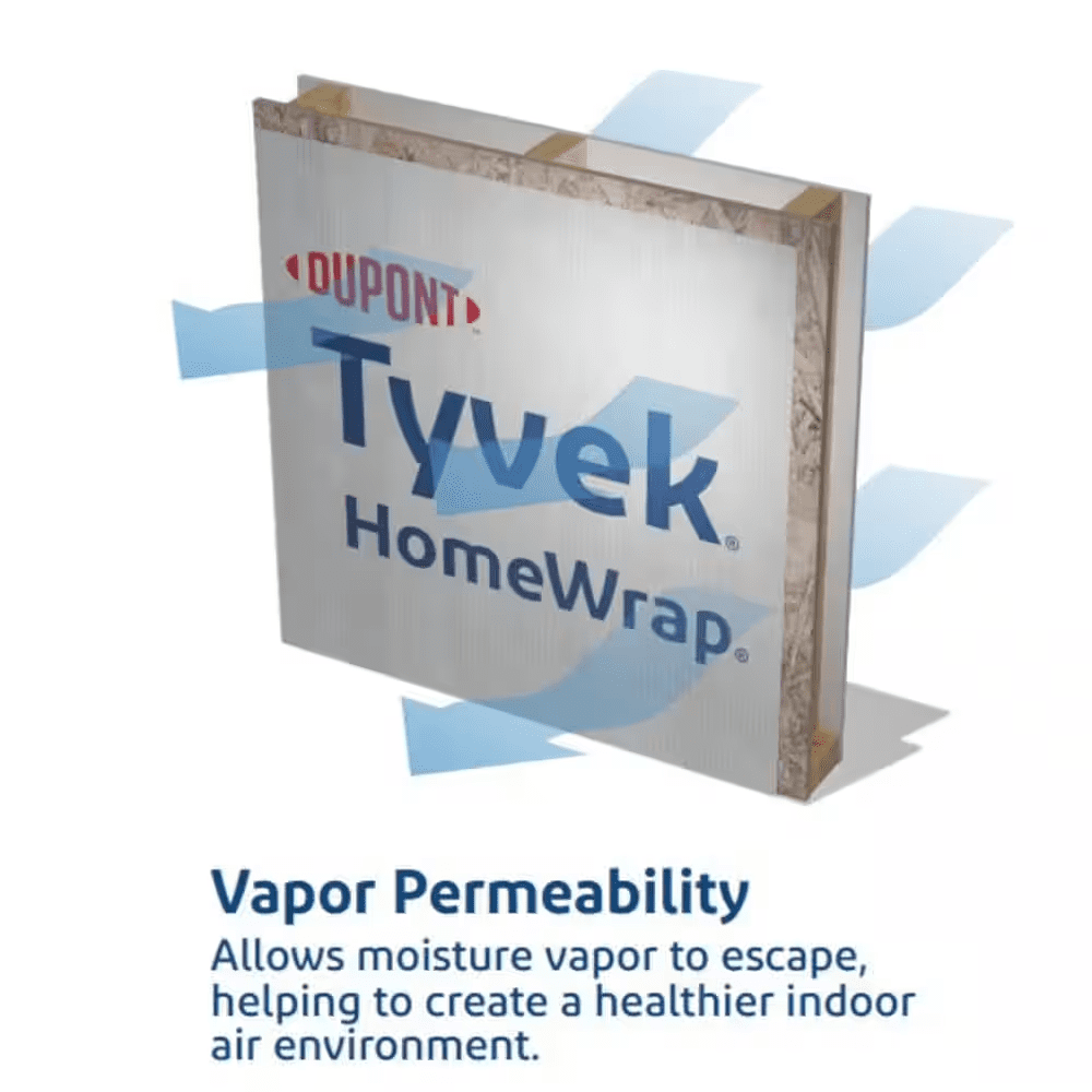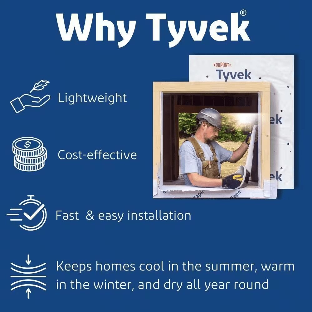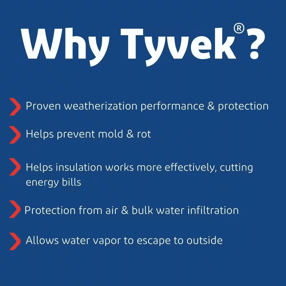 - TYVEK improves energy efficiency; retains heat, reduces drafts