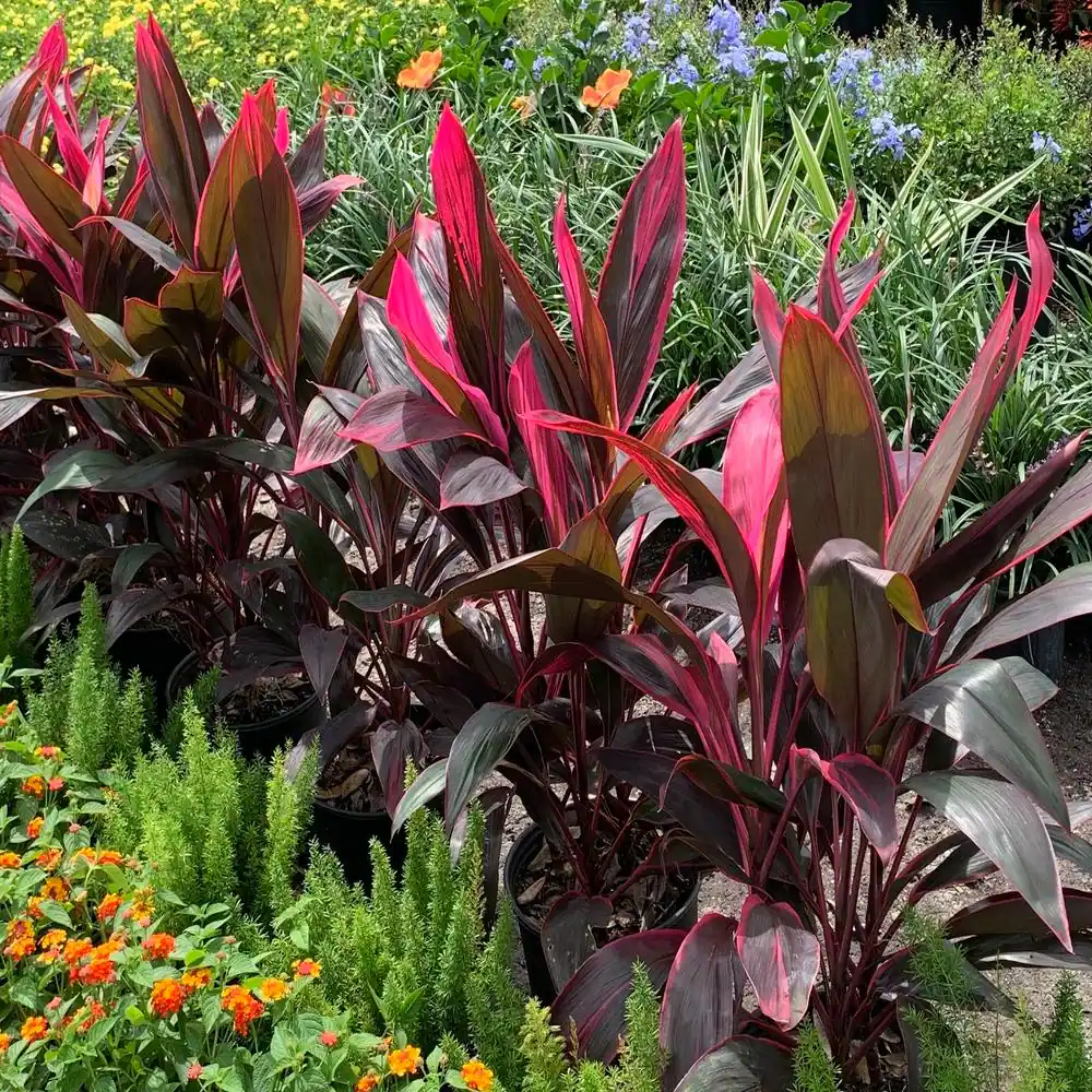 Standing out from other Ti plants, ‘Red Sister’ sports flamboyant fuchsia pink to deep burgundy foliage, a sure way to brighten a room or add drama to an outdoor garden. The intensity of the variegated hot pink foliage color is influenced by amount of sunlight and growing conditions, and its brightest color comes when the plant is sited where medium or bright indirect light occurs in your home or office. A terrific easy going, low maintenance plant for beginner gardens, needing little more than regular watering, an occasional feeding, or perhaps a simple pruning. In warmer climates, this plant can be planted outdoors as a specimen, as a border hedge, or in a patio pot.