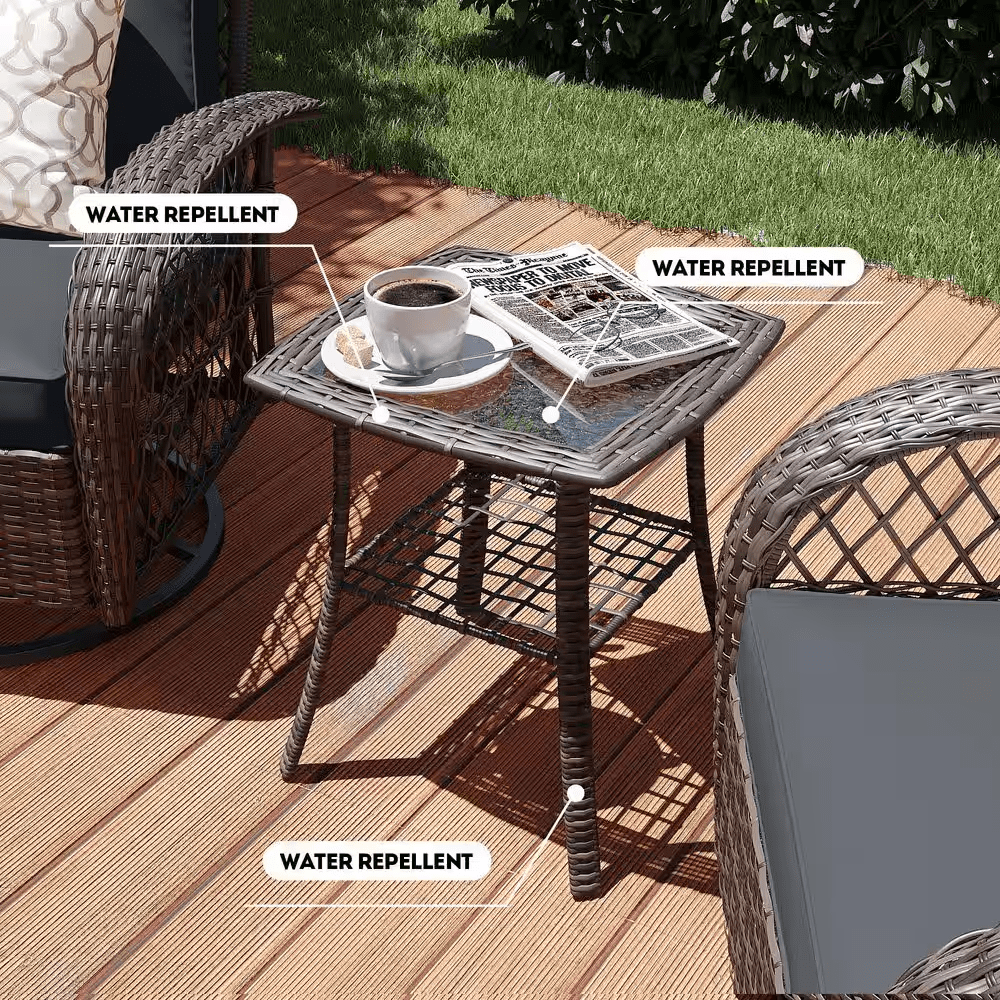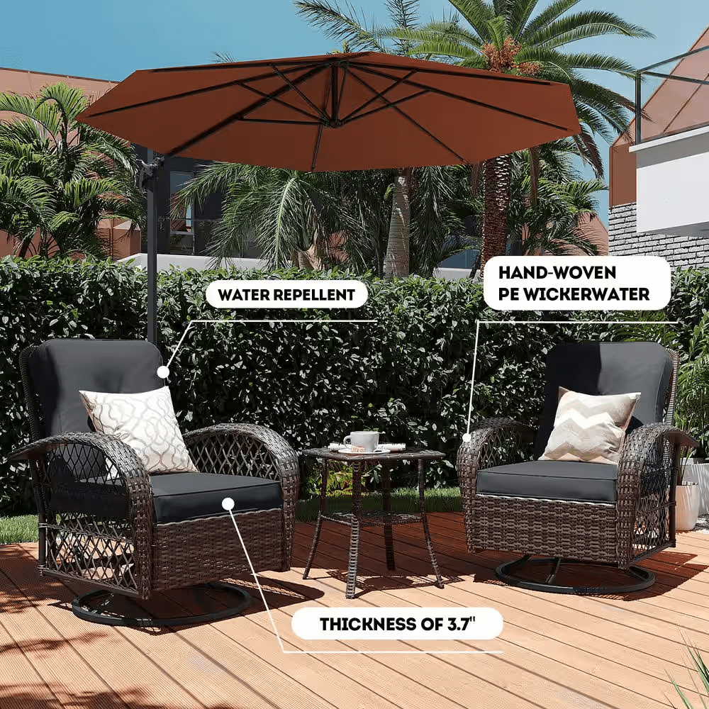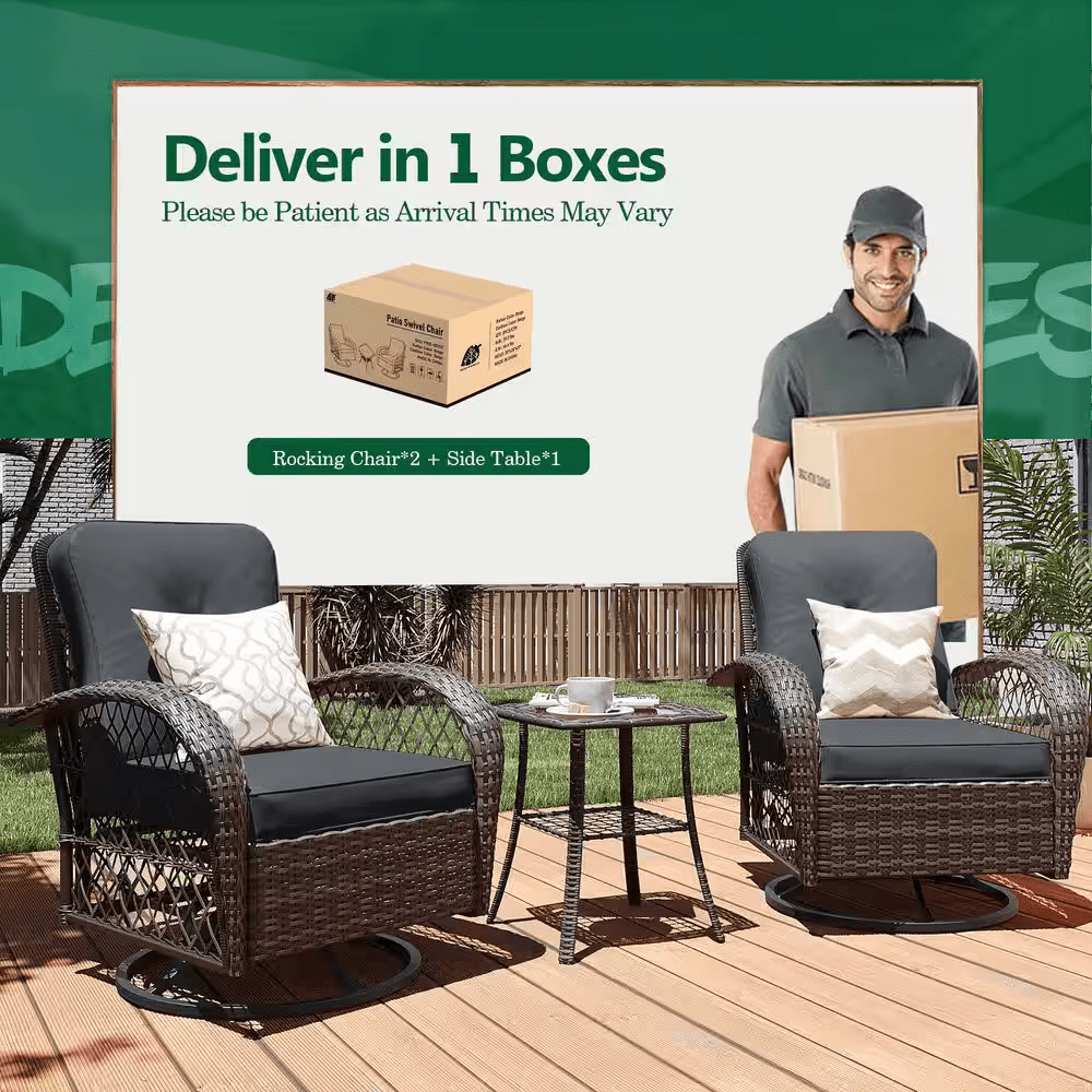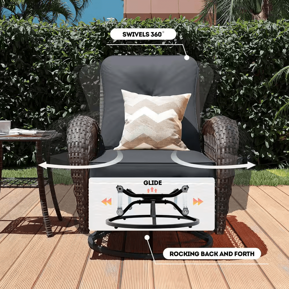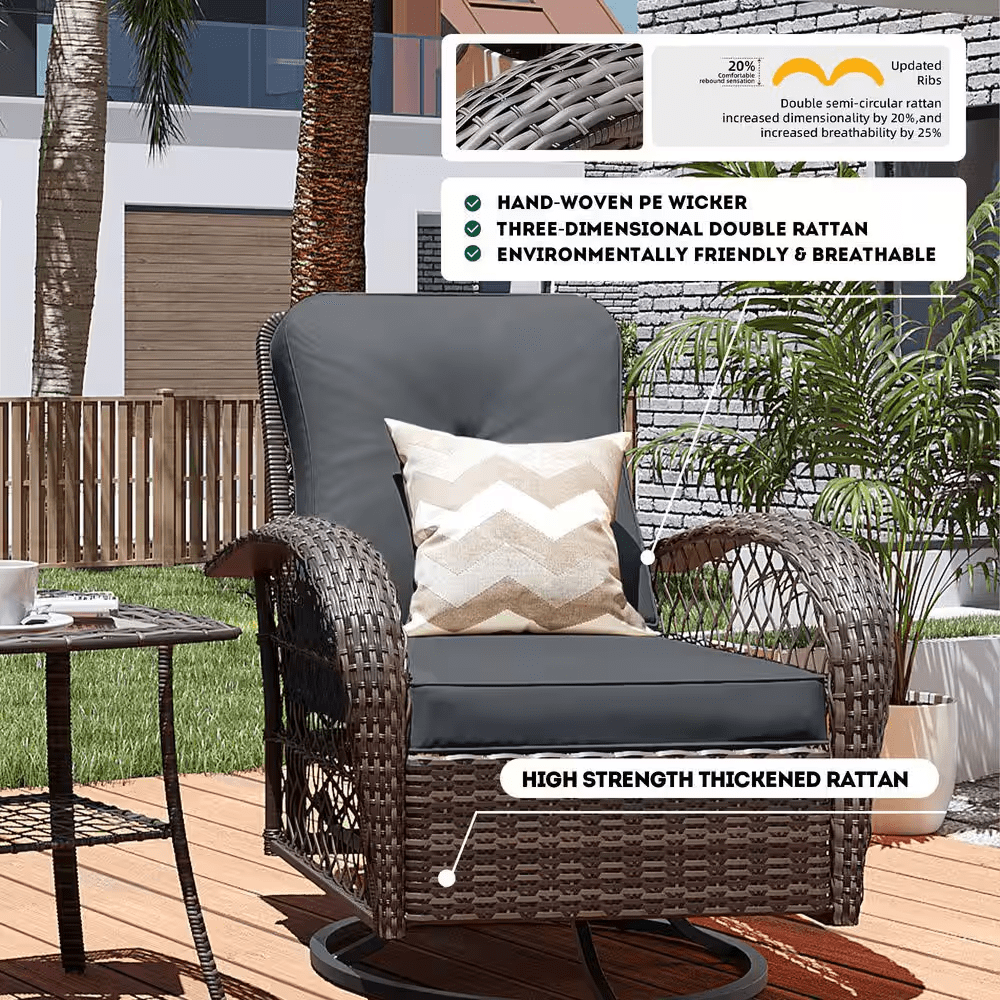 This outdoor rocking chair is the perfect addition to your courtyard or patio, ideal for relaxing and enjoying warm weather with friends and family. It is constructed with a sturdy steel frame and wrapped in weather-resistant resin wicker, offering a lightweight appearance and strong durability, making it an excellent choice for outdoor spaces even in rainy conditions. Most importantly, it comes with foam-filled cushions for both the seat and back, ensuring ultimate comfort for your relaxation.