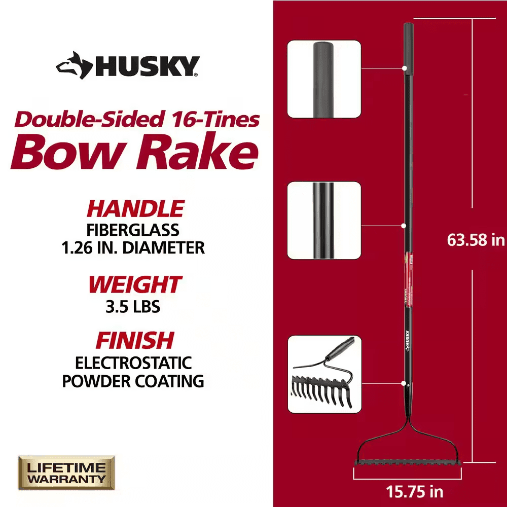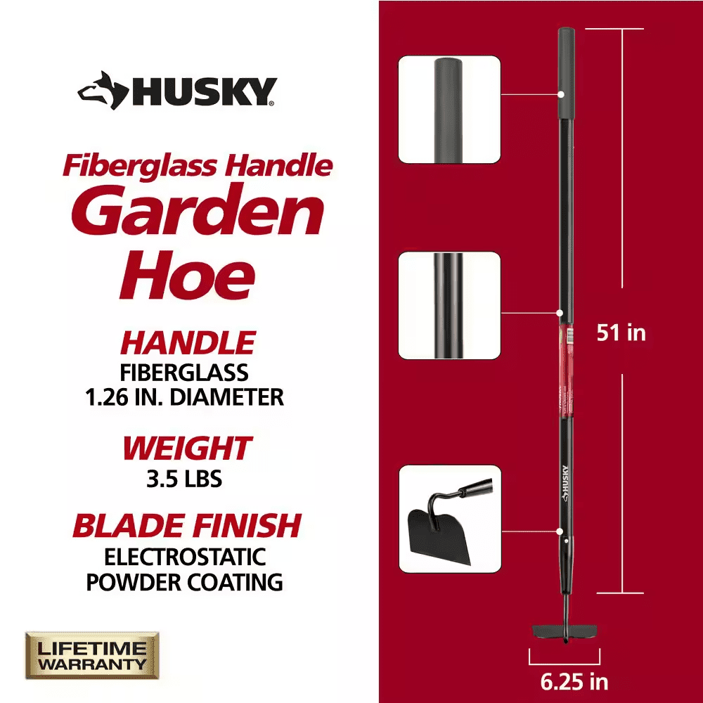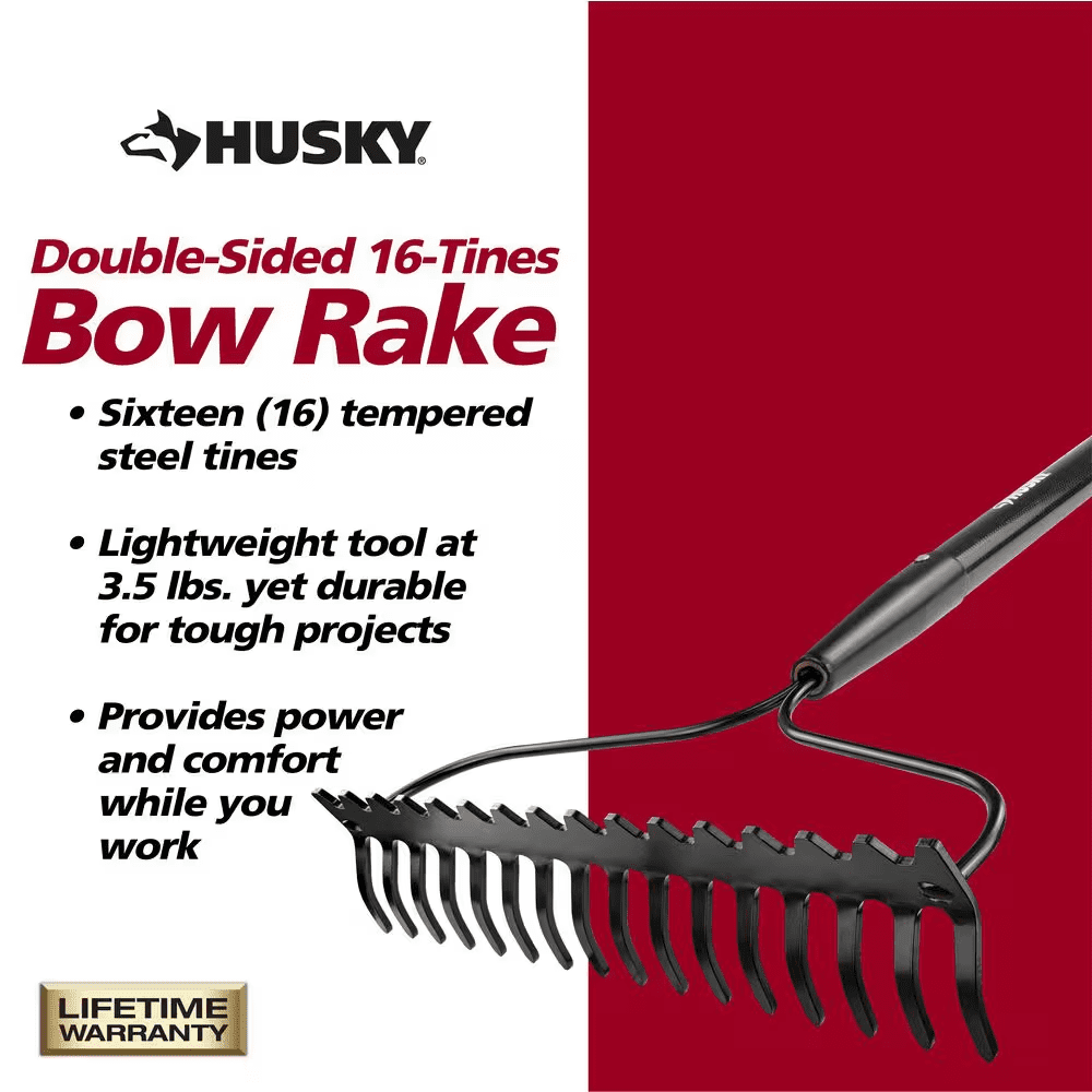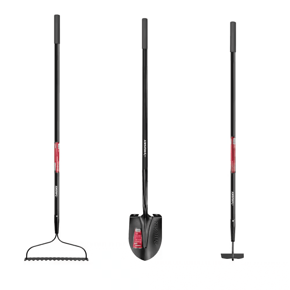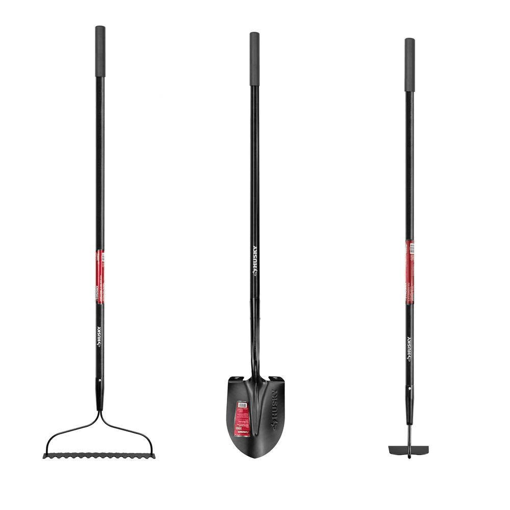 Do your gardening with ease with this Husky three-piece Fiberglass Essential Lawn and Garden Tool Set. With the hoe, bow rake and shovel, you’re well-equipped to tackle any garden activity that comes your way. Crafted with lightweight and resistant fiber handles, you’re able to efficiently turn the soil, incorporate fertilizers, level the soil and move materials or dig with ease. Rely on the full tempered blades of these tools for greater resistance and durability. The long handles are both lightweight and durable to reduce fatigue, plus they’ll last you for years with a powder-coat finish.