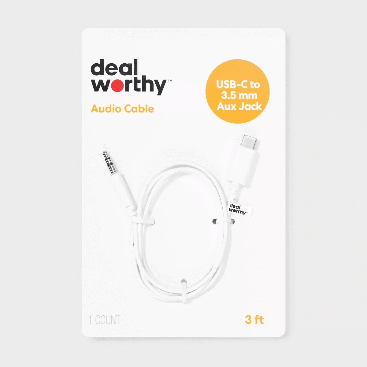 Experience clear sound using the 3′ USB-C to AUX Cable from dealworthy™ in White. Easily connect your USB-C devices to any 3.5mm AUX input with this 3-foot cord in classic white. Enjoy quality audio with seamless compatibility, whether it’s for your car stereo or home speakers. Ideal for on-the-go listening, it offers a convenient 3.5mm jack to USB-C connection to expand your options.