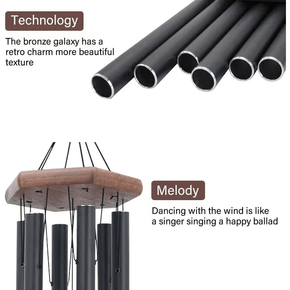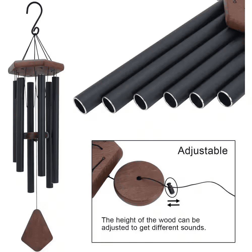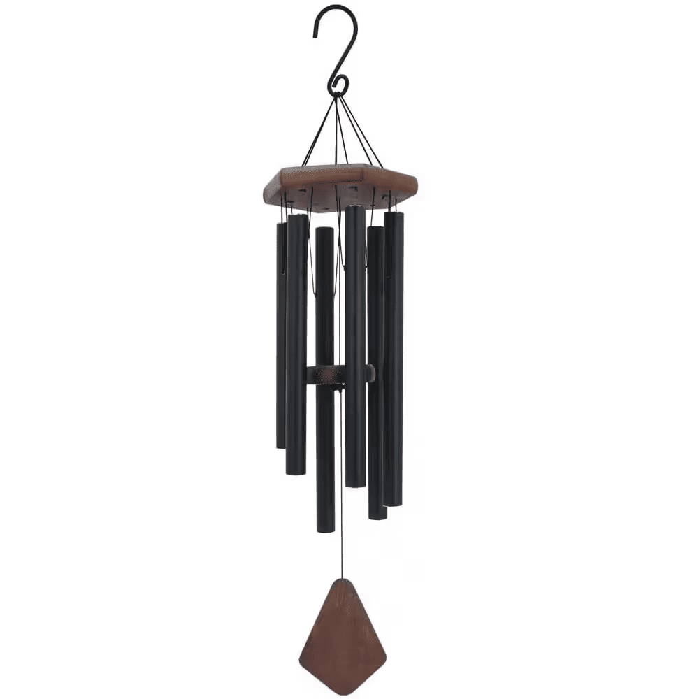 Transform your outdoor or indoor space with the 30 in. Black Aluminum Wind Chime, a perfect blend of elegance and functionality. This wind chime features a unique design with six hand-tuned aluminum powder-coated tubes, ensuring a superior musical performance. The longest tube measures 14.3 in. and the chime comes with a stronger metal hook for easy hanging. Each tube is precision-tuned to the pentatonic scale, producing peaceful melodies that will relax your mind and body. The wind chime’s surface is covered with a waterproof coating, effectively resisting wind and water damage. The strings are made of corrosion-resistant nylon material, and the high-quality aluminum pipes ensure durability and long-lasting beauty. The 30-inch size is ideal for hanging in patios, gardens, yards, or homes, and the stronger S hook allows for easy installation. This wind chime is not only a beautiful decoration but also a perfect gift choice for Mother’s Day, Christmas, or any special occasion. Customize it to create a unique and lasting gift that shows how much you care. Enjoy the rich and full melodies that play as a whisper in the wind, bringing tranquility and beauty to your surroundings.